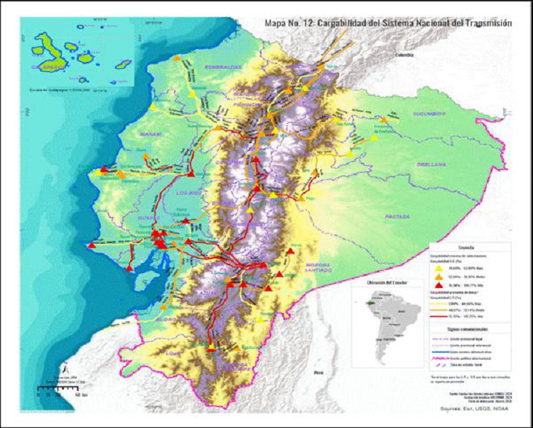 ARCONEL (February 2025), Mapa No. 12: Cargabilidad del Sistema Nacional del Transmisión