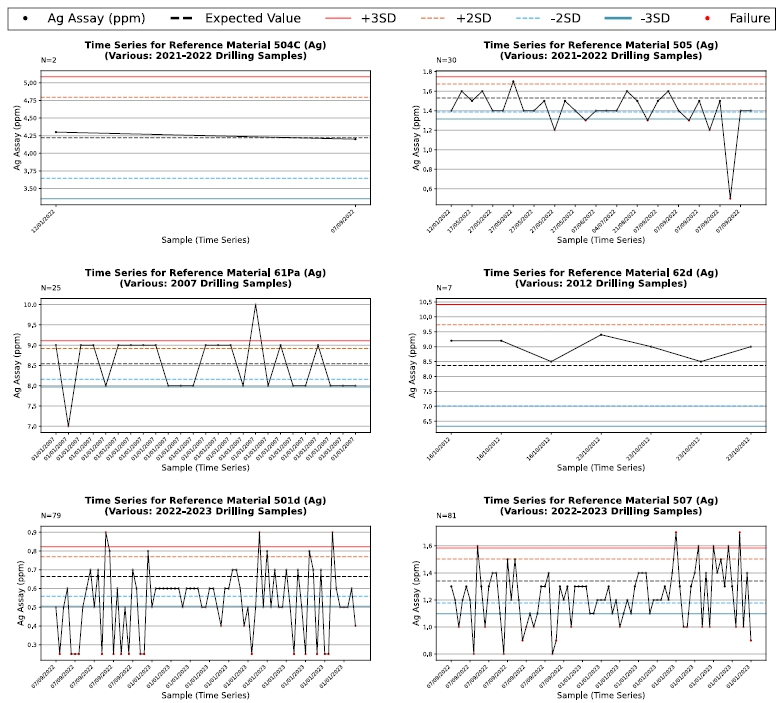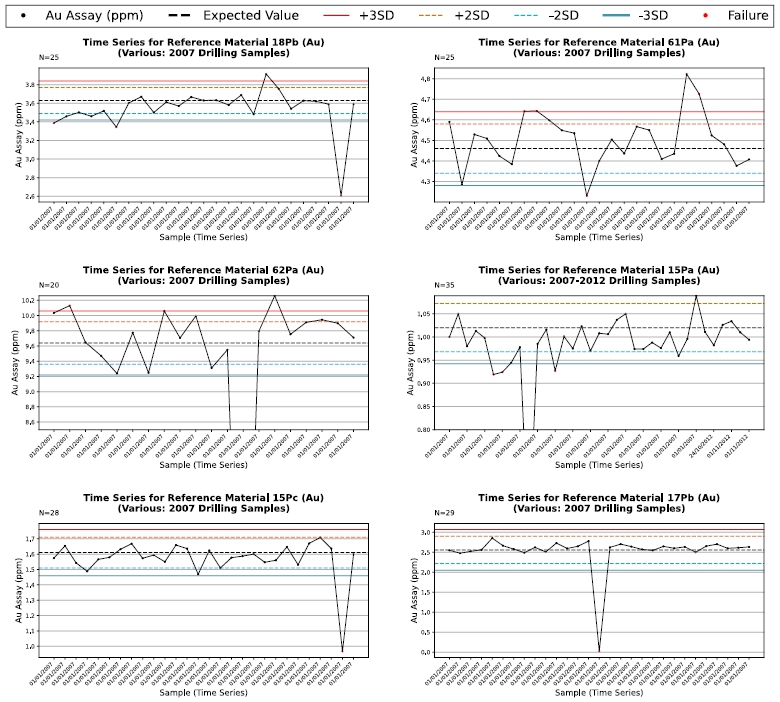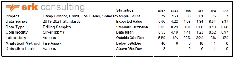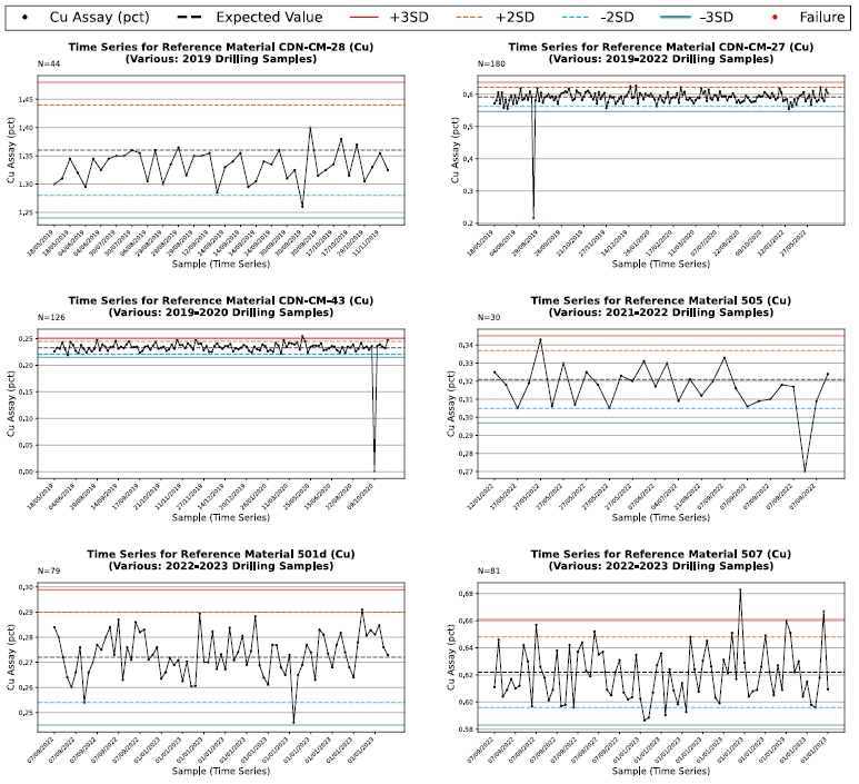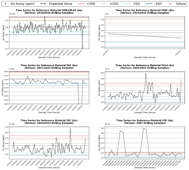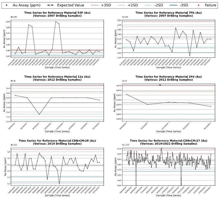 Time Series Plots Certified Reference Material Samples Assayed for the Condor Project Between 2019 and 2021