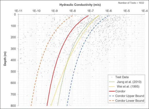 Jiang X.W., Wang X.S., Li W. (2010) Semi-empirical equations for the systematic decrease in permeability with depth in porous and fractured media. Hydrogeology Journal, Vol 18, pp. 839-850.