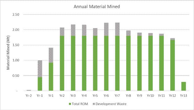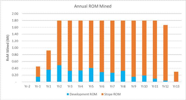 Conduct a detailed mine scheduling study using updated stope geometries and equipment cycle times to confirm annual production targets and ore delivery consistency.