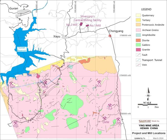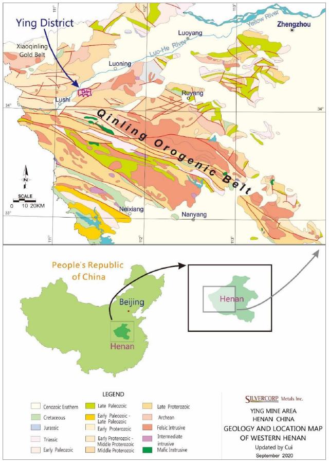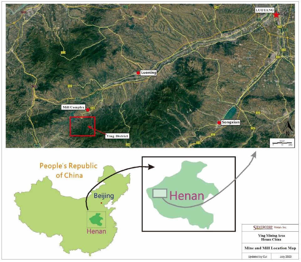 The Property is about 240 kilometres (km) west-southwest of Zhengzhou, the capital city of Henan Province, and 145 km south-west of Luoyang, which is the nearest major city. The city of Luoning is about 56 km by paved roads from Silvercorp’s Ying mill site. The project areas have good road access and operate year-round. The area has a continental sub-tropical climate with four distinct seasons.