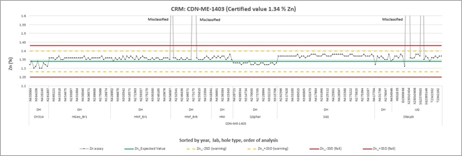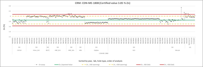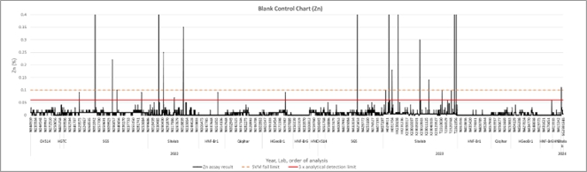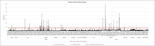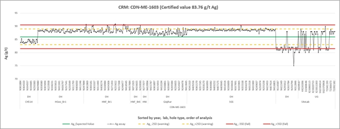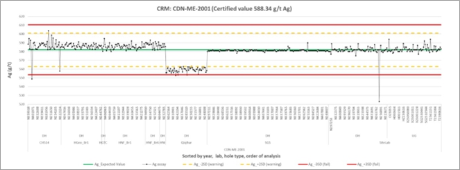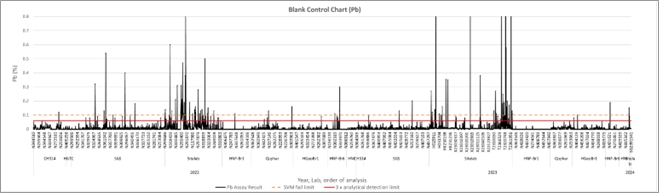 Silvercorp has established Quality Assurance / Quality Control (QA/QC) procedures which monitor accuracy, precision and sample contamination during sampling, preparation, and analytical processes through the inclusion of Certified Reference Materials (CRM), coarse blanks, and field duplicates with sample batches. Umpire sampling has been completed by several independent laboratories. The QA/QC program for 1 January 2022 to 31 December 2023 included 3,616 CRMs, 3,609 coarse blanks, 4,251 quarter core field duplicates, and 314 umpire samples with 127,935 drillhole samples. A further 618 CRMs, 534 coarse blanks, 4,246 field duplicates, and 442 umpire