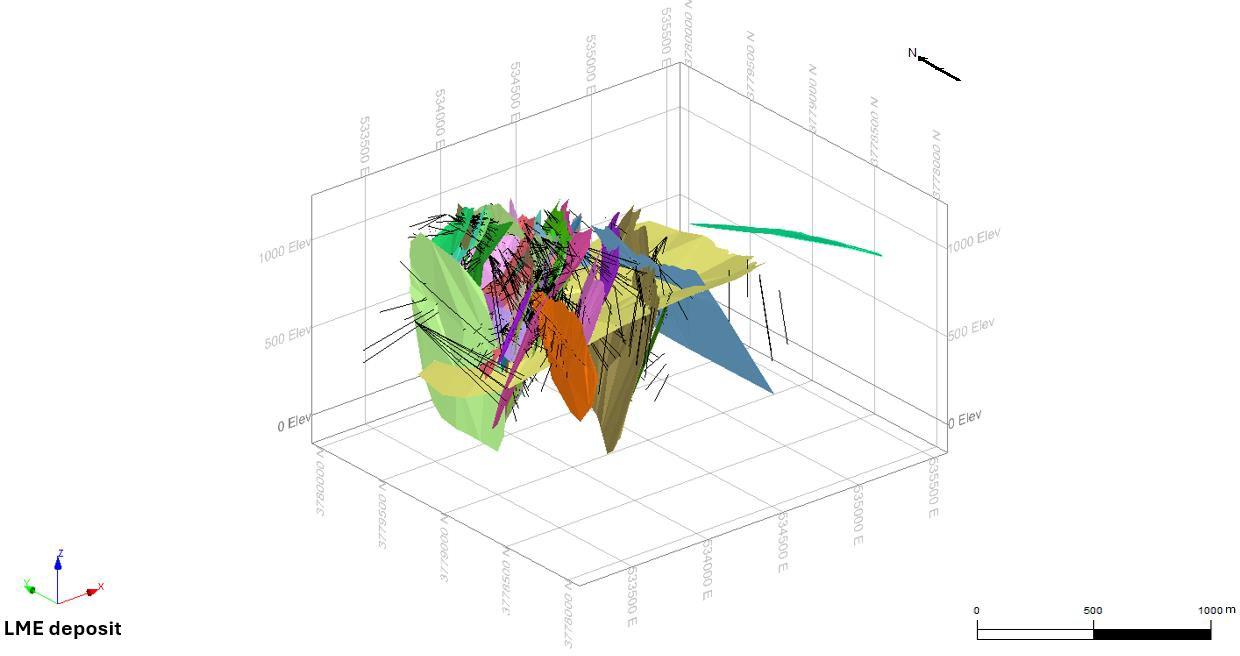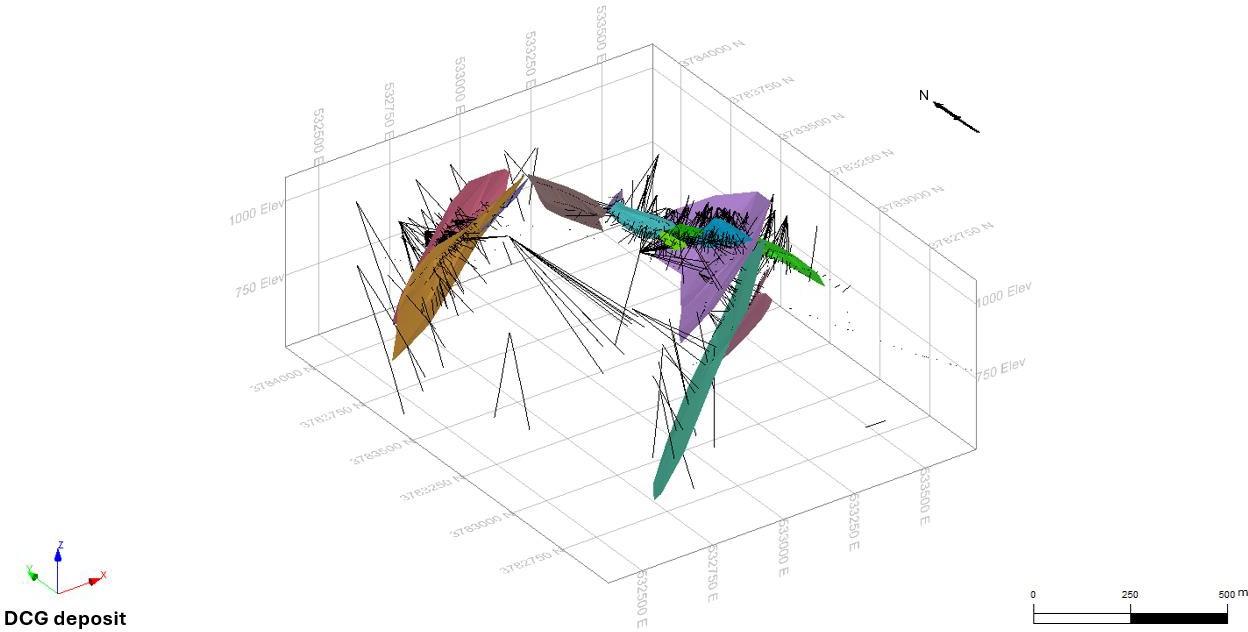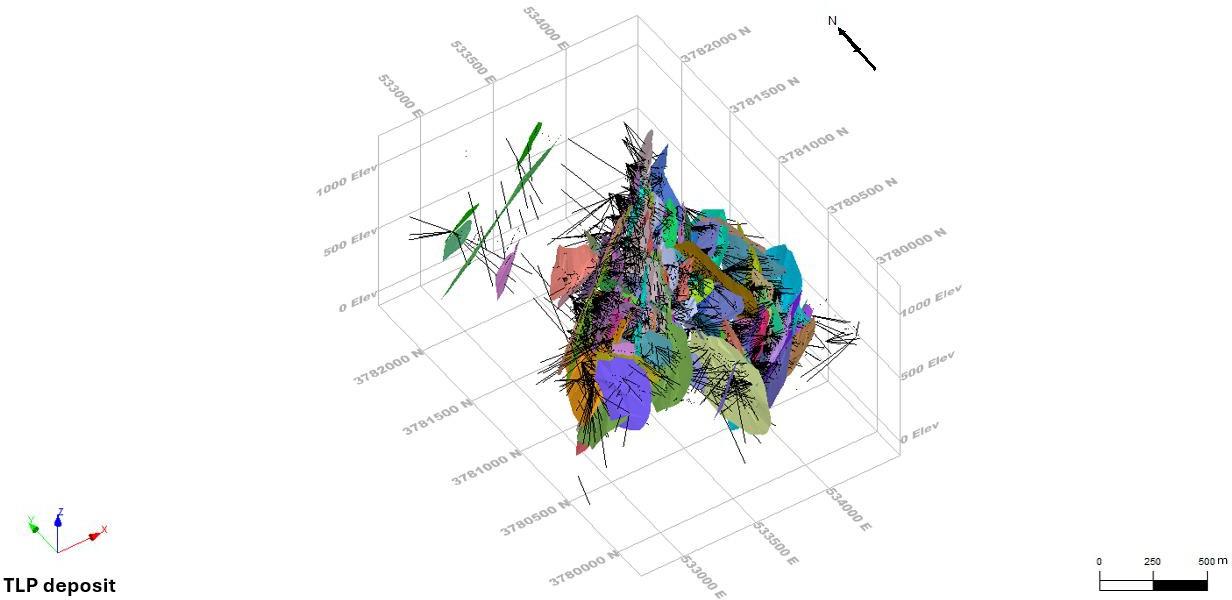 The interpretation and construction of mineralization wireframes was completed by Silvercorp by digitizing vein strings in cross section, and then linking strings to create three-dimensional (3D) wireframes or by creating separate 3D surfaces for hangingwall and footwall vein contacts and then creating solid 3D wireframes from those surfaces. Mineralization interpretations were constructed primarily from vein contacts recorded in drill core and underground mapping and then modified based on silver, lead, zinc, and where relevant, gold grades. Mineralized veins at the SGX, HPG, and HZG mines were modelled using a nominal threshold of 140 grams per tonne (g/t) silver equivalent (AgEq). Mineralized veins at the TLP, LMW, LME, and DCG mines were modelled using a nominal threshold of 120 g/t AgEq. Modelling cut-off grades were driven by mine specific controls.