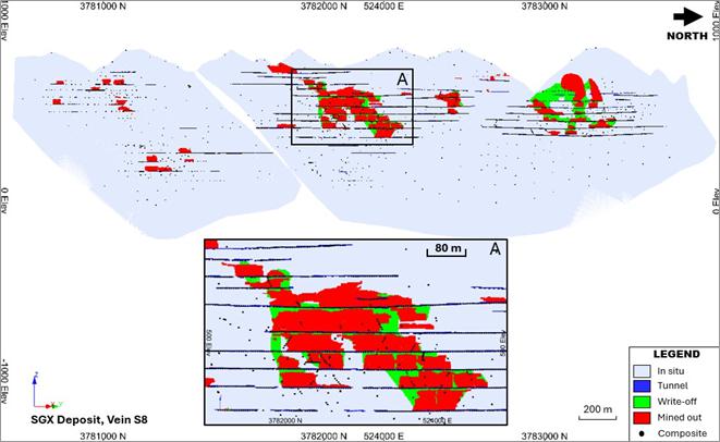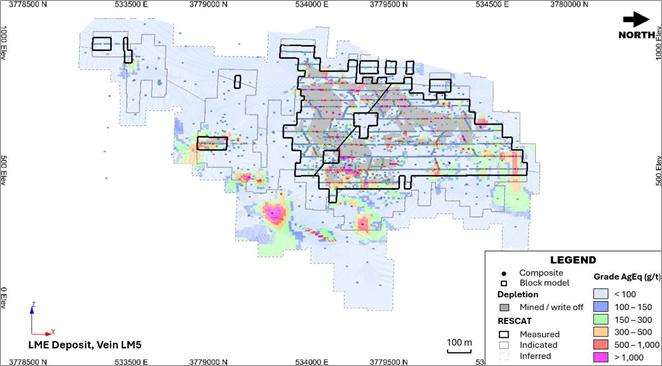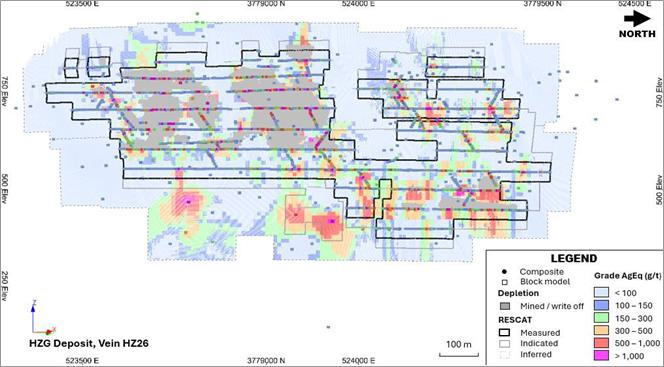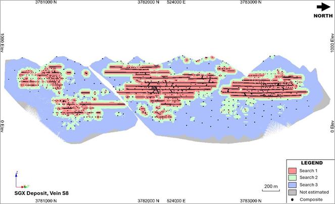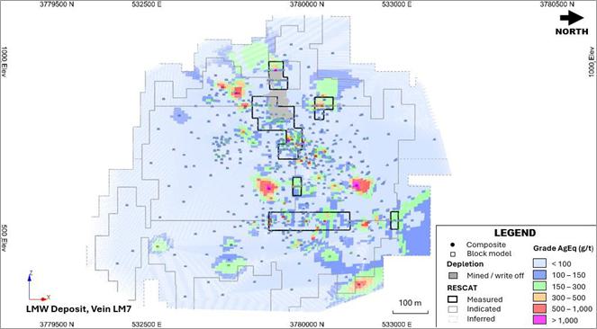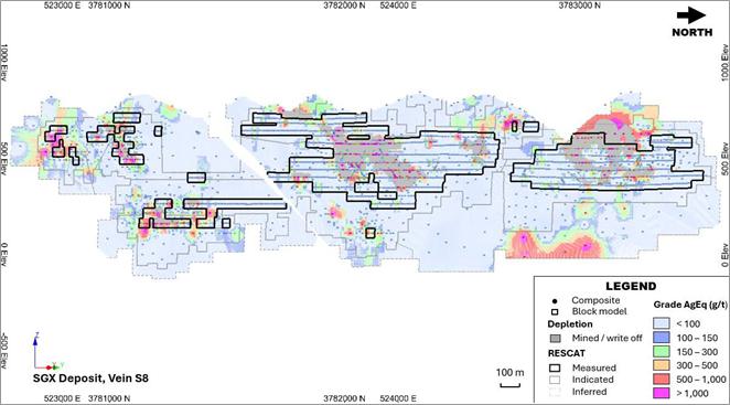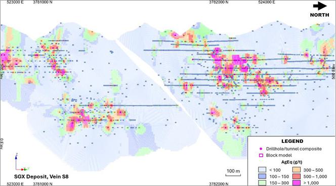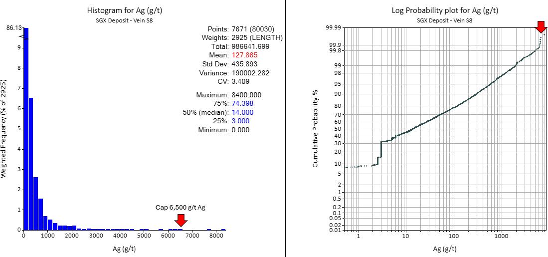 A composite interval of 0.4 m was selected for all mines based on the predominant sample length. Appropriate top capping was applied based on a review of each vein. Grade estimates were completed for silver (Ag) and lead (Pb) in all deposits, zinc (Zn) in several deposits, and gold (Au) within select veins at select deposits.