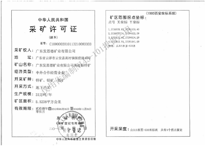 Technical Report on Gaocheng Silver-Lead-Zinc Project in Guangdong