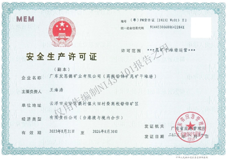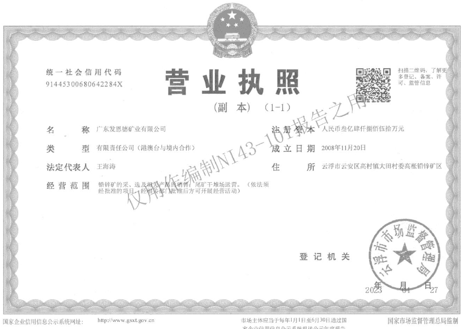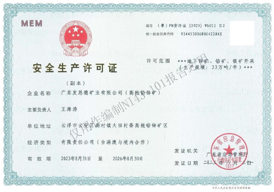 To accompany the report entitled Technical Report on Gaocheng Silver-Lead-Zinc Project in Guangdong Province, People’s Republic of China (“GC Project”), which was effective on 30 June 2024, and prepared for Guangdong Found Mining Co., Ltd.