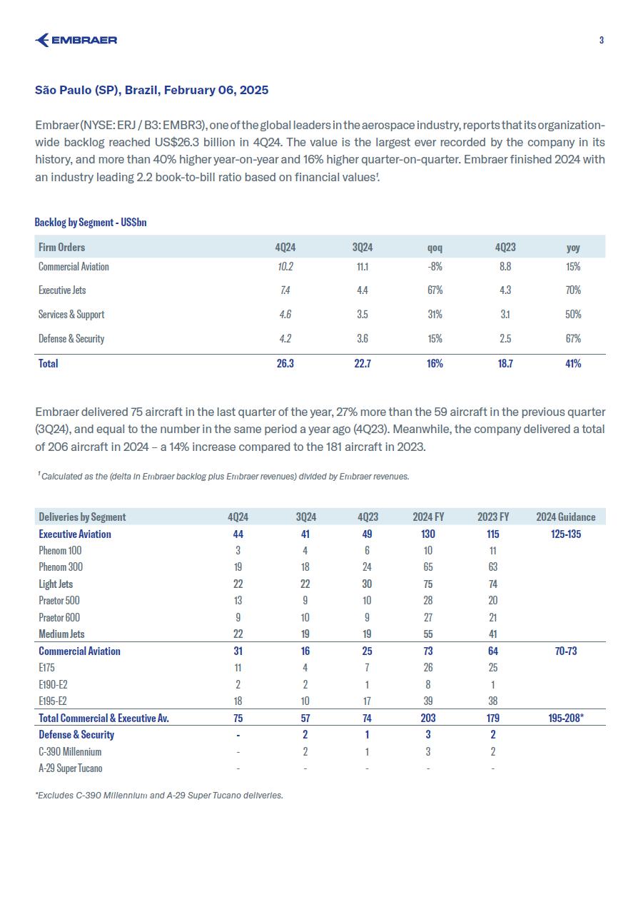 Embraer S.A. hereby designates this report on Form 6-K as being incorporated by reference into its registration statement on Form F-3, as filed with the SEC on February 5, 2025 (File No. 333-284698).
