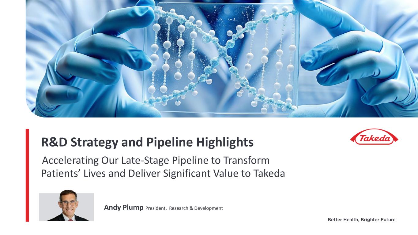 R&D Strategy and Pipeline Highlights Andy Plump President, Research & Development Accelerating Our Late-Stage Pipeline to Transform Patients’ Lives and Deliver Significant Value to Takeda