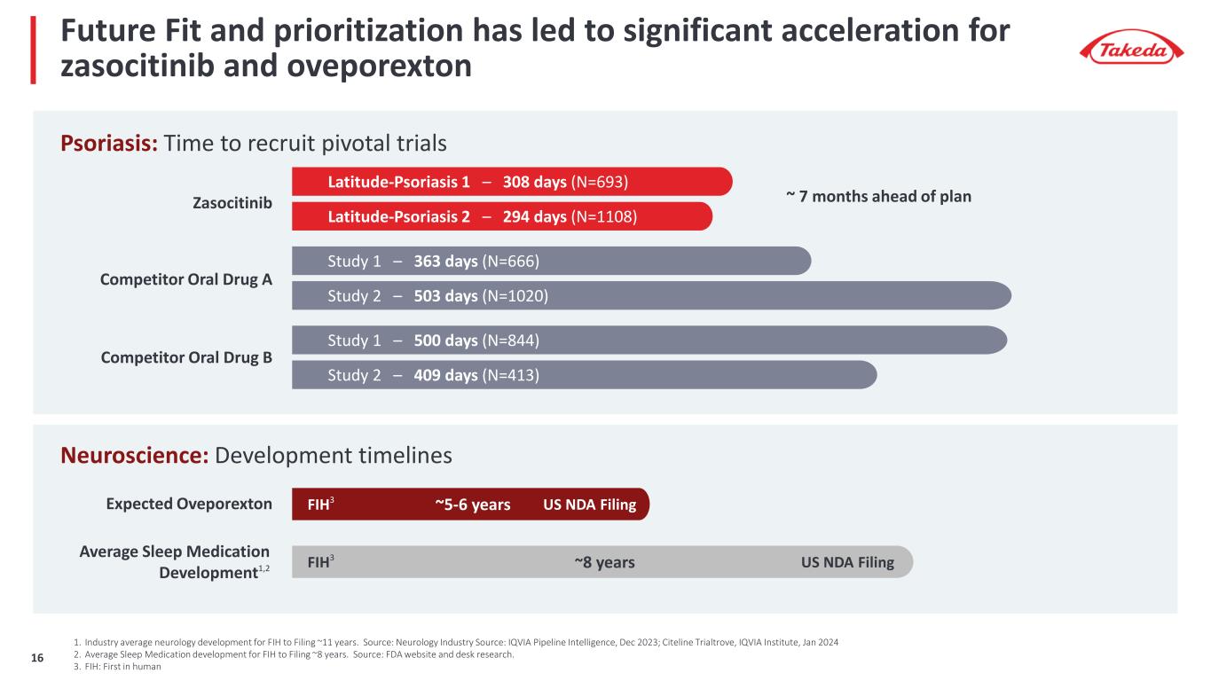Future Fit and prioritization has led to significant acceleration for zasocitinib and oveporexton ~8 yearsAverage Sleep Medication Development1,2 Study 2 – 503 days (N=1020) Study 2 – 409 days (N=413) Latitude-Psoriasis 1 – 308 days (N=693) Zasocitinib Psoriasis: Time to recruit pivotal trials Latitude-Psoriasis 2 – 294 days (N=1108) Study 1 – 363 days (N=666) Study 1 – 500 days (N=844) Competitor Oral Drug B Competitor Oral Drug A ~ 7 months ahead of plan FIH3 US NDA Filing Neuroscience: Development timelines 1. Industry average neurology development for FIH to Filing ~11 years. Source: Neurology Industry Source: IQVIA Pipeline Intelligence, Dec 2023; Citeline Trialtrove, IQVIA Institute, Jan 2024 2. Average Sleep Medication development for FIH to Filing ~8 years. Source: FDA website and desk research. 3. FIH: First in human Expected Oveporexton ~5-6 yearsFIH3 US NDA Filing 16