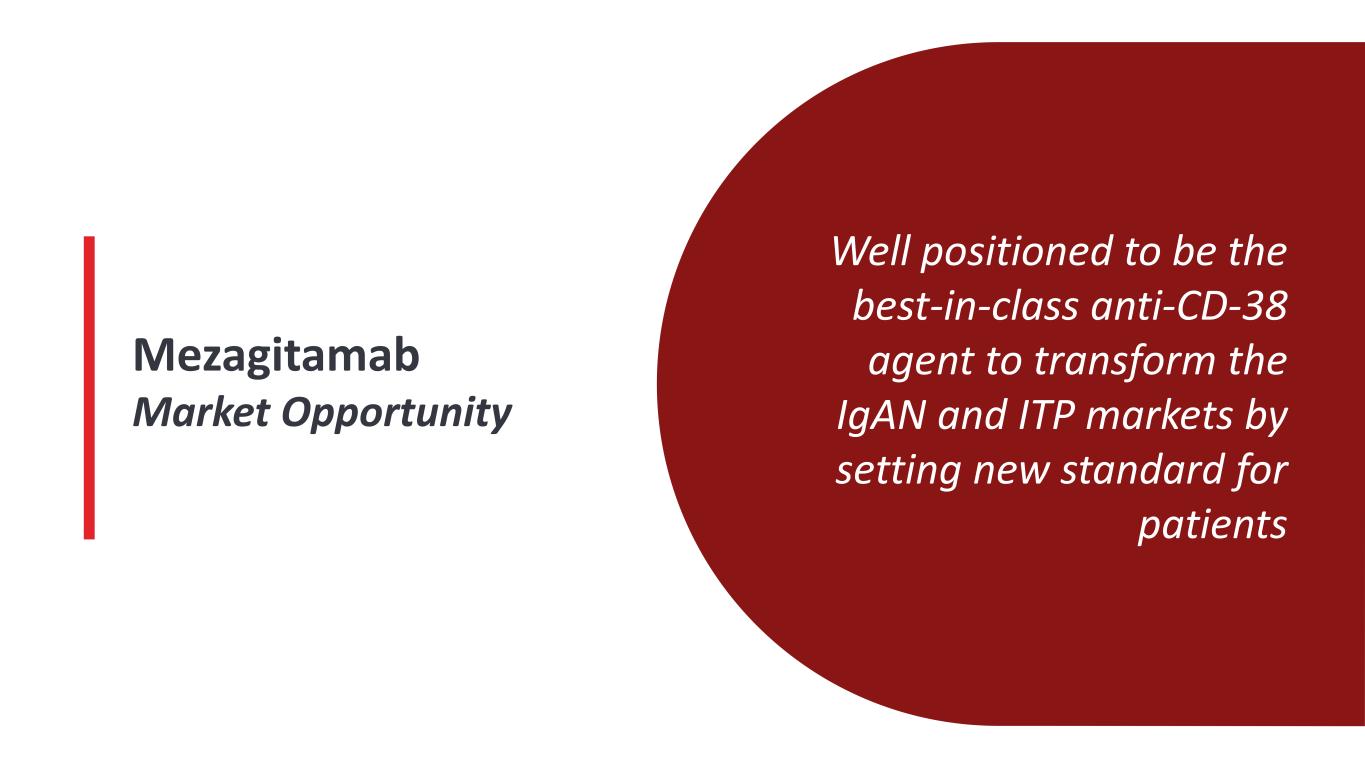 Mezagitamab Market Opportunity Well positioned to be the best-in-class anti-CD-38 agent to transform the IgAN and ITP markets by setting new standard for patients