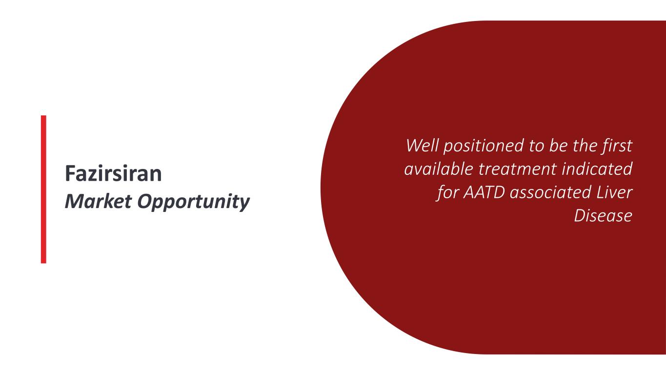 Fazirsiran Market Opportunity Well positioned to be the first available treatment indicated for AATD associated Liver Disease