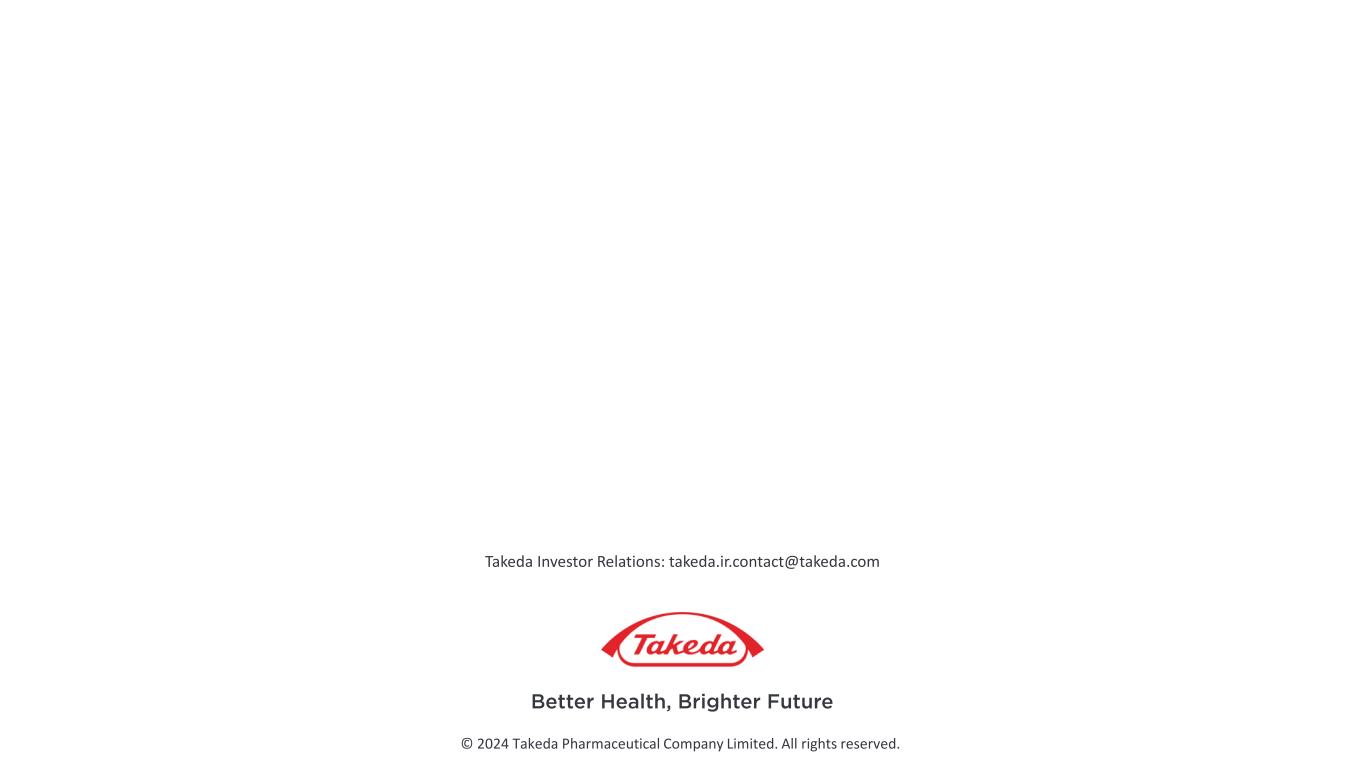 © 2024 Takeda Pharmaceutical Company Limited. All rights reserved. Takeda Investor Relations: takeda.ir.contact@takeda.com