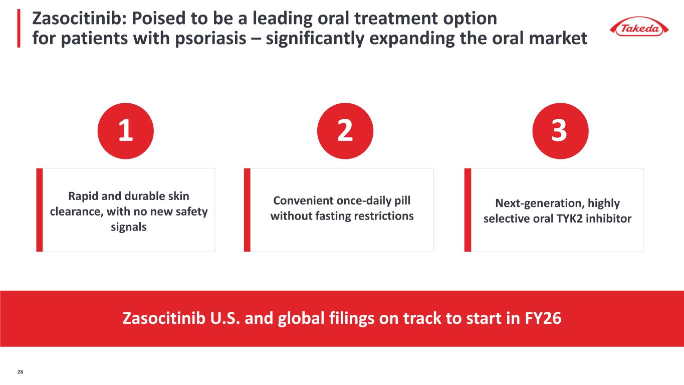 Zasocitinib is positioned to transform and expand the oral advanced therapy market in psoriatic disease Enabling Expansion with Focused LCM Programs that Unlock Significant Future Upside Hidradenitis Suppurativa Ph2 started FY25Dermatology → Vitiligo Ph2 started FY25 Ulcerative Colitis Ph2 data expected FY26 Gastroenterology → Crohn’s Disease Ph2 data expected FY26 + 1.0M → 1.3M Moderate to Severe Psoriasis treated patients growing at low single digits 10% → 22% Significant expansion of the oral market driven by next-gen oral entrants Poised to Lead Among Oral Options in the Growing Psoriasis Market US Pso Market Evolution Over the Next Decade PsO Rapidly Expanding Within Psoriatic Disease PsA Ph3 Psoriatic Arthritis (PsA) data expected in FY27 Global Peak Revenue Potential For PsO + PsA PsO PsA $3-6B1 + = 25 1. Please refer to the Important Notice at the start of this presentation for more information about peak revenue estimates. ~3x more patients treated with an oral therapy