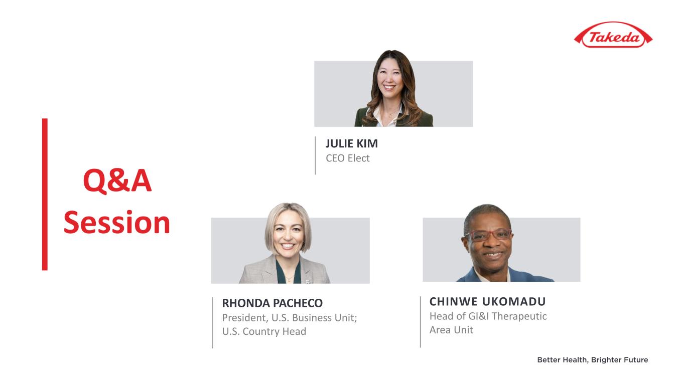 Q&A Session JULIE KIM CEO Elect RHONDA PACHECO President, U.S. Business Unit; U.S. Country Head CHINWE UKOMADU Head of GI&I Therapeutic Area Unit