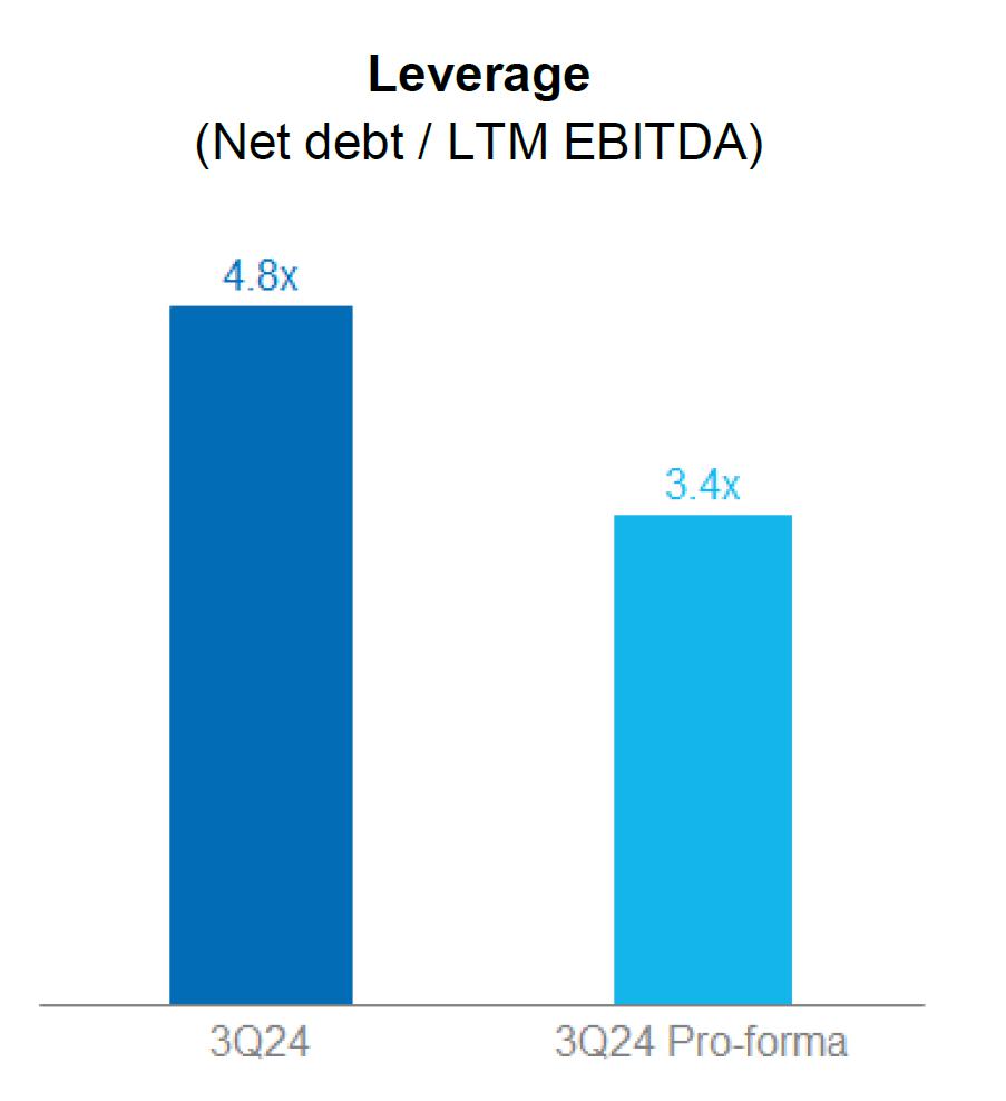 Leverage using LTM EBITDA 4.4x -1.0x 3.4x