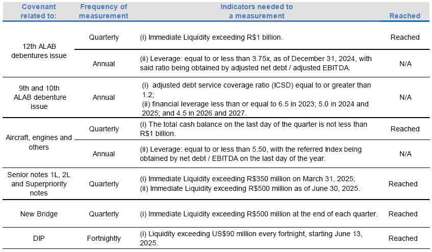 We draw attention to Explanatory Note no. 2 to the individual and consolidated interim financial information, which states those were prepared under the going concern assumption and that, as of June 30, 2025, the Company's current liabilities exceeded its current assets in the amount of R$ 43,870 thousand (parent) and in the amount of R$ 14,183,562 thousand (consolidated), also stating negative shareholders' equity in the amount of R$ 26,040,457 thousand as of that date and cash flow applied to operational activities in the amounts of R$ 270,698 thousand (parent) and R$ 381,397 thousand (consolidated) to the period of six months ended June 30, 2025. On May 28, 2025, the Company voluntarily filed for judicial reorganization with the United States Bankruptcy Court for the Southern District of New York, under the provisions of Chapter 11 of the United States Bankruptcy Code. These events and conditions, together with other factors described therein, indicate the existence of material uncertainty that may cast significant doubt on the Company's ability to continue as a going concern. The plans and actions being developed by management to restore the Company’s financial-economic balance, its cash flow and financial position are described in Explanatory Note no. 2. The individual and consolidated interim financial information do not include any adjustments that may arise from the result of such uncertainty. Our conclusion is not qualified regarding this matter.