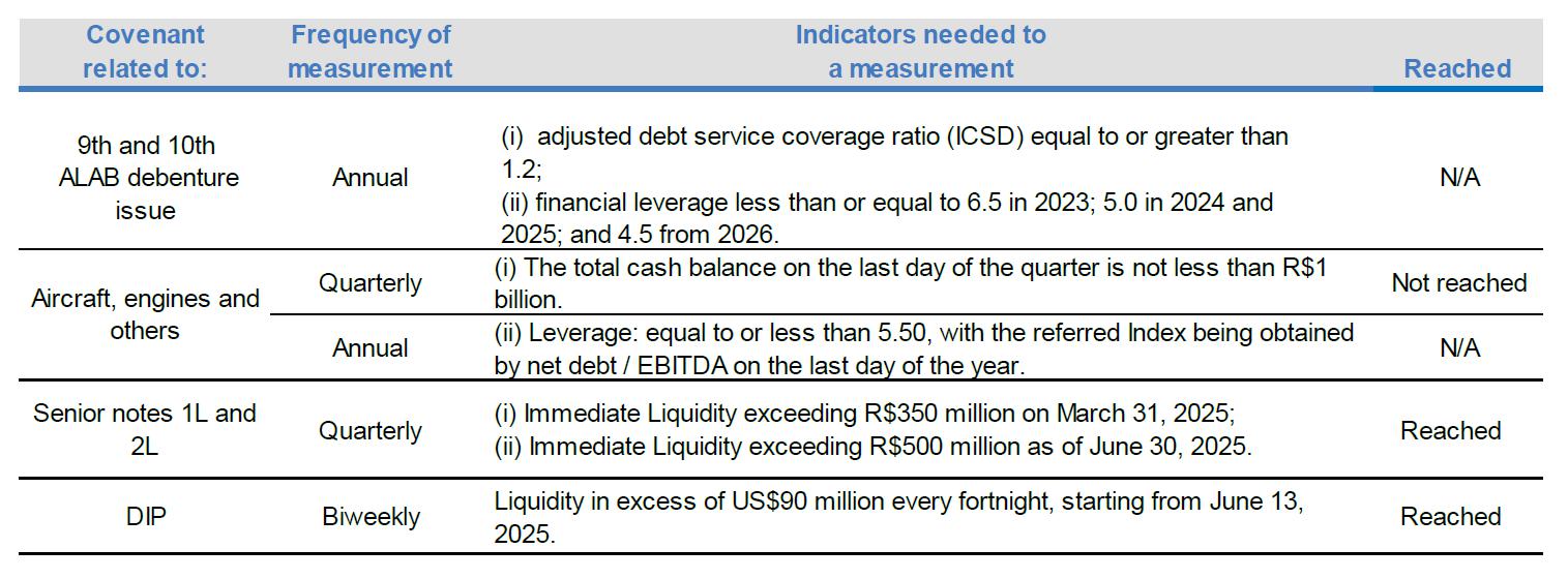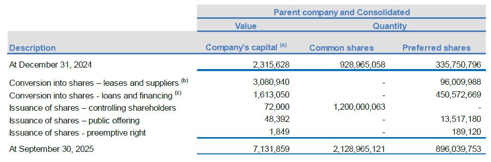 We draw attention to Explanatory Note no. 2 to the individual and consolidated interim financial information, which states those were prepared under the going concern assumption and that, as of September 30, 2025, the Company's current liabilities exceeded its current assets in the amount of R$ 87,277 thousand (parent) and in the amount of R$ 19,529,527 thousand (consolidated), also stating negative shareholders' equity in the amount of R$ 27,406,740 thousand as of that date and cash flow applied to operational activities in the amounts of R$ 279,342 thousand (parent) and R$ 1,458,420 thousand (consolidated) to the period of nine months ended September 30, 2025. On May 28, 2025, the Company voluntarily filed for judicial reorganization with the United States Bankruptcy Court for the Southern District of New York, under the provisions of Chapter 11 of the United States Bankruptcy Code. These events and conditions, together with other factors described therein, indicate the existence of material uncertainty that may cast significant doubt on the Company's ability to continue as a going concern. The plans and actions being developed by management to restore the Company’s financial-economic balance, its cash flow and financial position are described in Explanatory Note no. 2. The individual and consolidated interim financial information do not include any adjustments that may arise from the result of such uncertainty. Accordingly, the preparation of the individual and consolidated interim financial information, as described in Explanatory Note 18.4, follows the provisions of Chapter 11 until its conclusion. Our conclusion is not qualified regarding this matter.