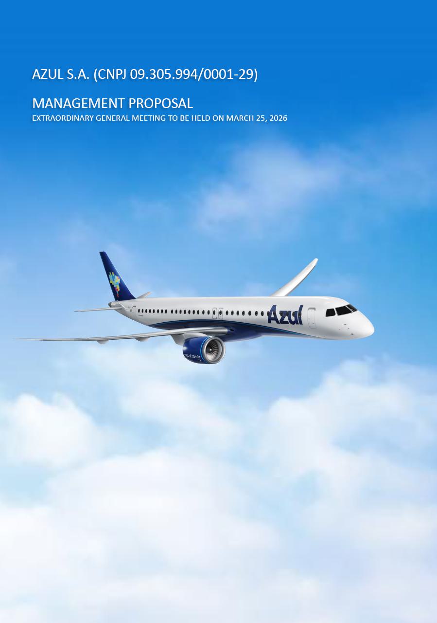 In view of the call, on this date, of the Extraordinary General Meeting, to be held on March 25, 2026, at 11:00 a.m., Azul's Management hereby submits for the shareholders’ appreciation of the Management Proposal ("Proposal") for the evaluation and deliberation of the following matters: