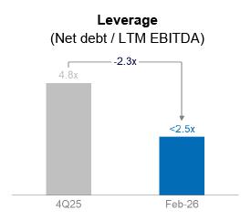 ·Leverage of less than 2.5x in February 2026 upon emergence and implementation of the plan of reorganization (based on 2025 EBITDA and February 2026 net debt)
