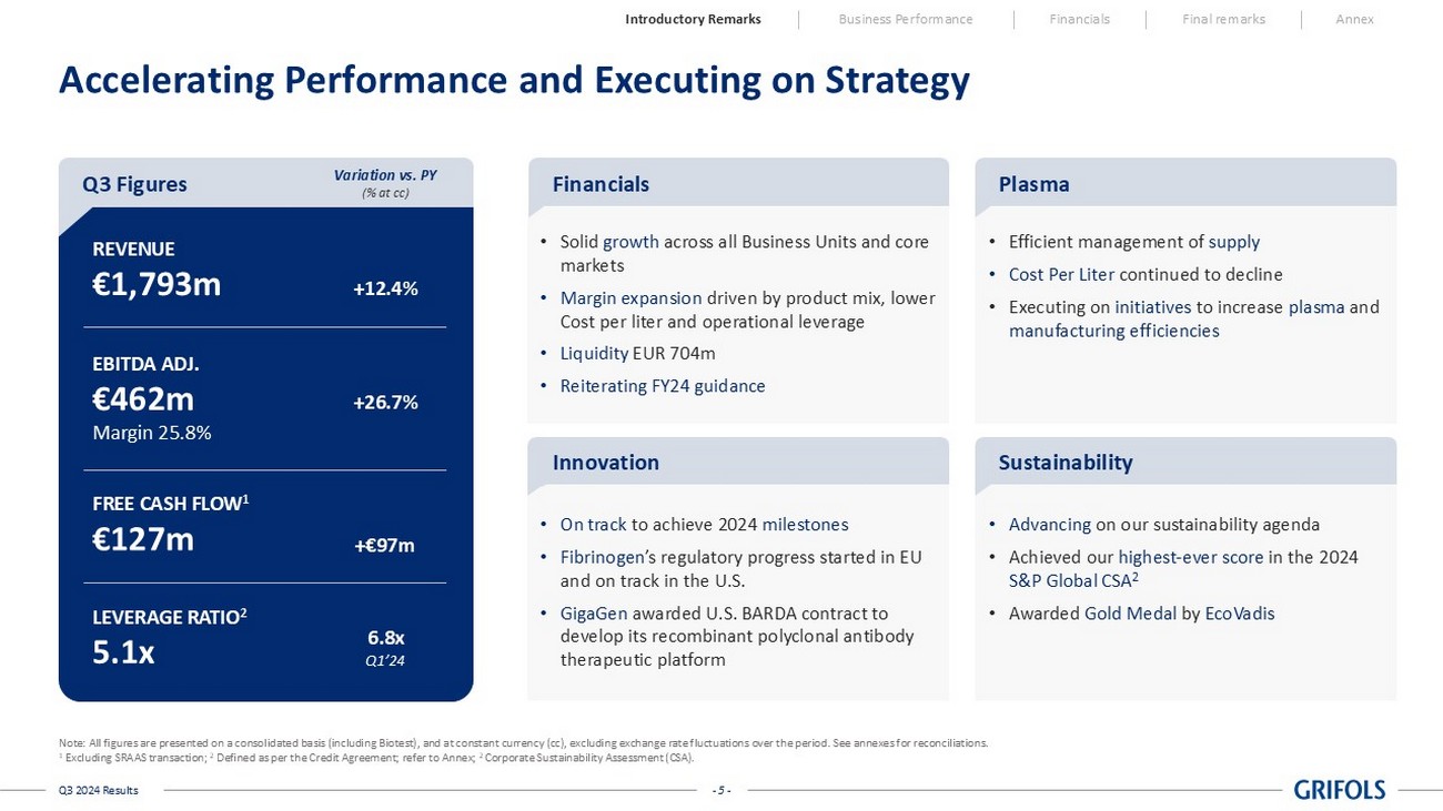 - 4 - Q3 2024 Results Nacho Abia Chief Executive Officer (CEO) Continued Delivery of Sequentially Strong Quarterly Performance Led by Biopharma
