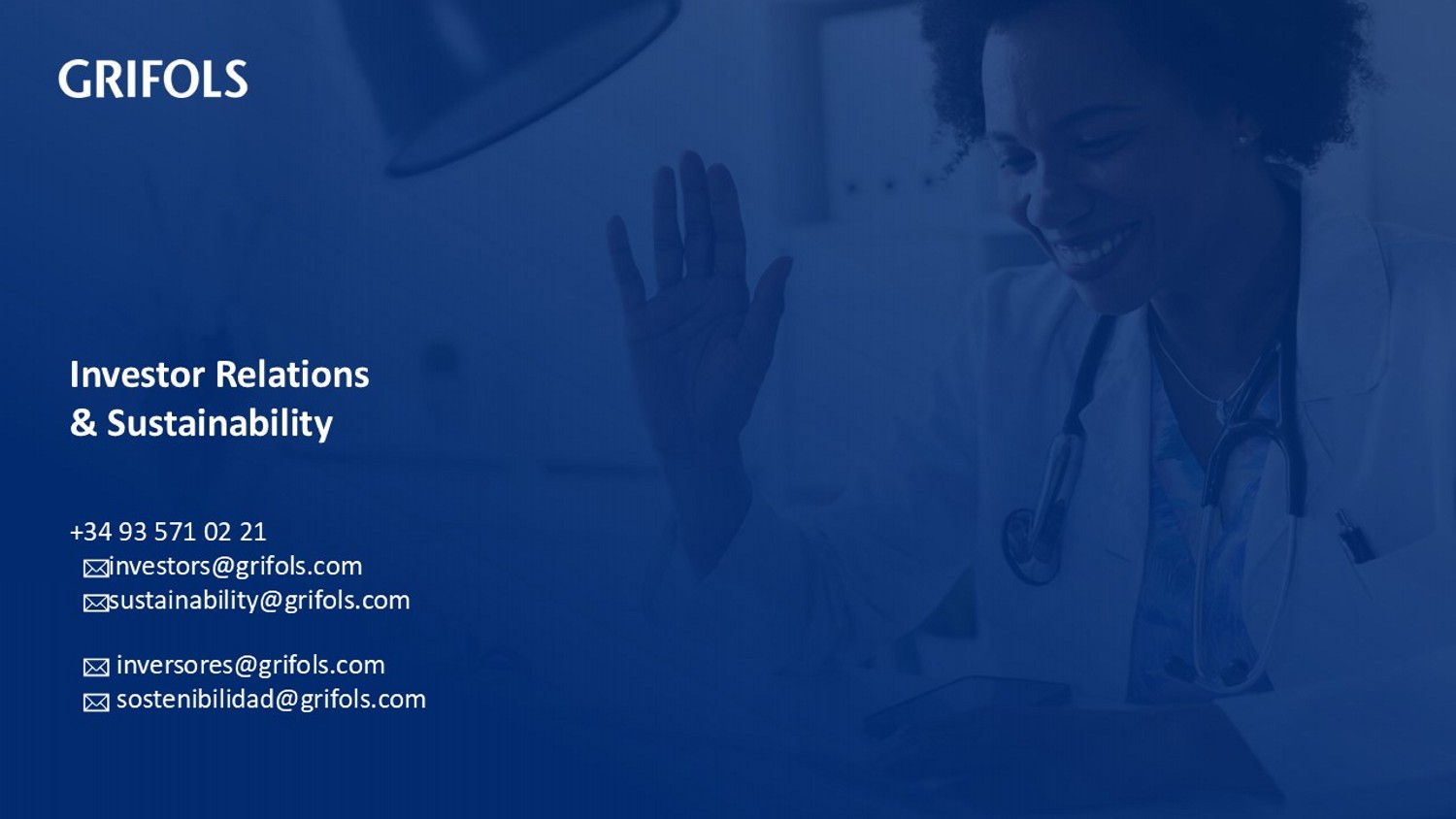 - 33 - Q1 2025 Results Investor Relations & Sustainability + 34 93 571 02 21 investors@grifols.com sustainability@grifols.com inversores@grifols.com sostenibilidad@grifols.com