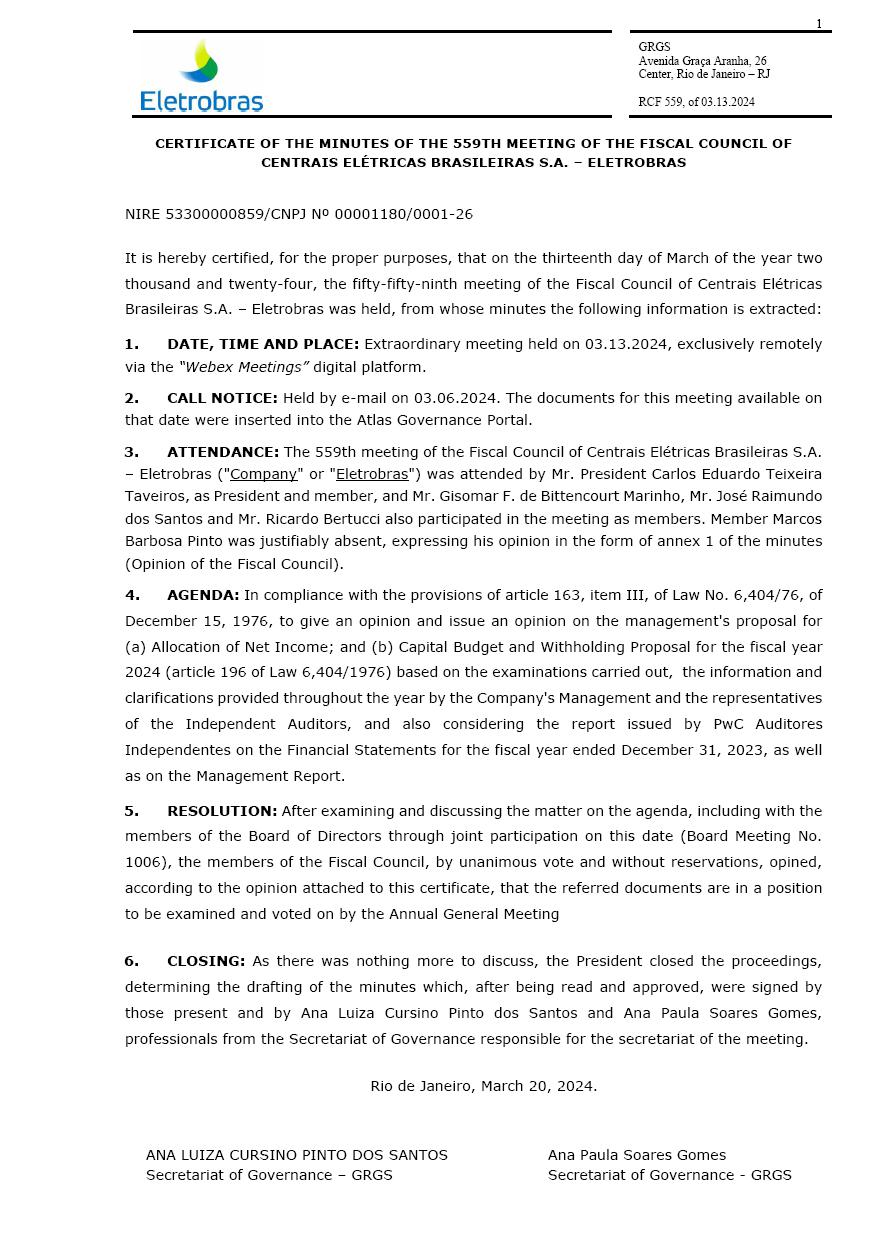 CENTRAIS ELÉTRICAS BRASILEIRAS S.A. - ELETROBRÁS