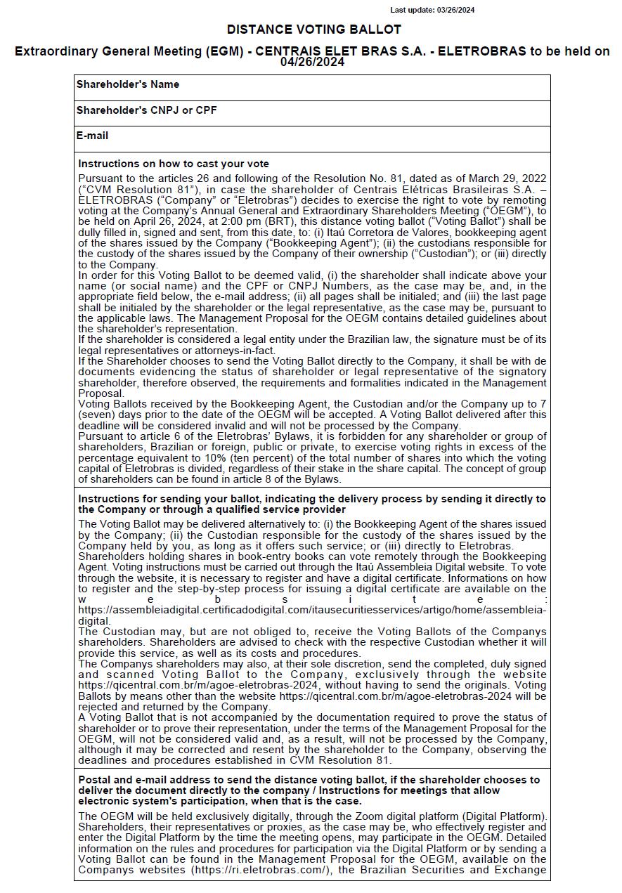 CENTRAIS ELÉTRICAS BRASILEIRAS S.A. - ELETROBRÁS