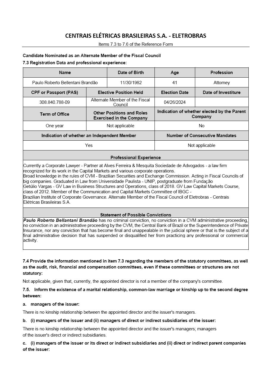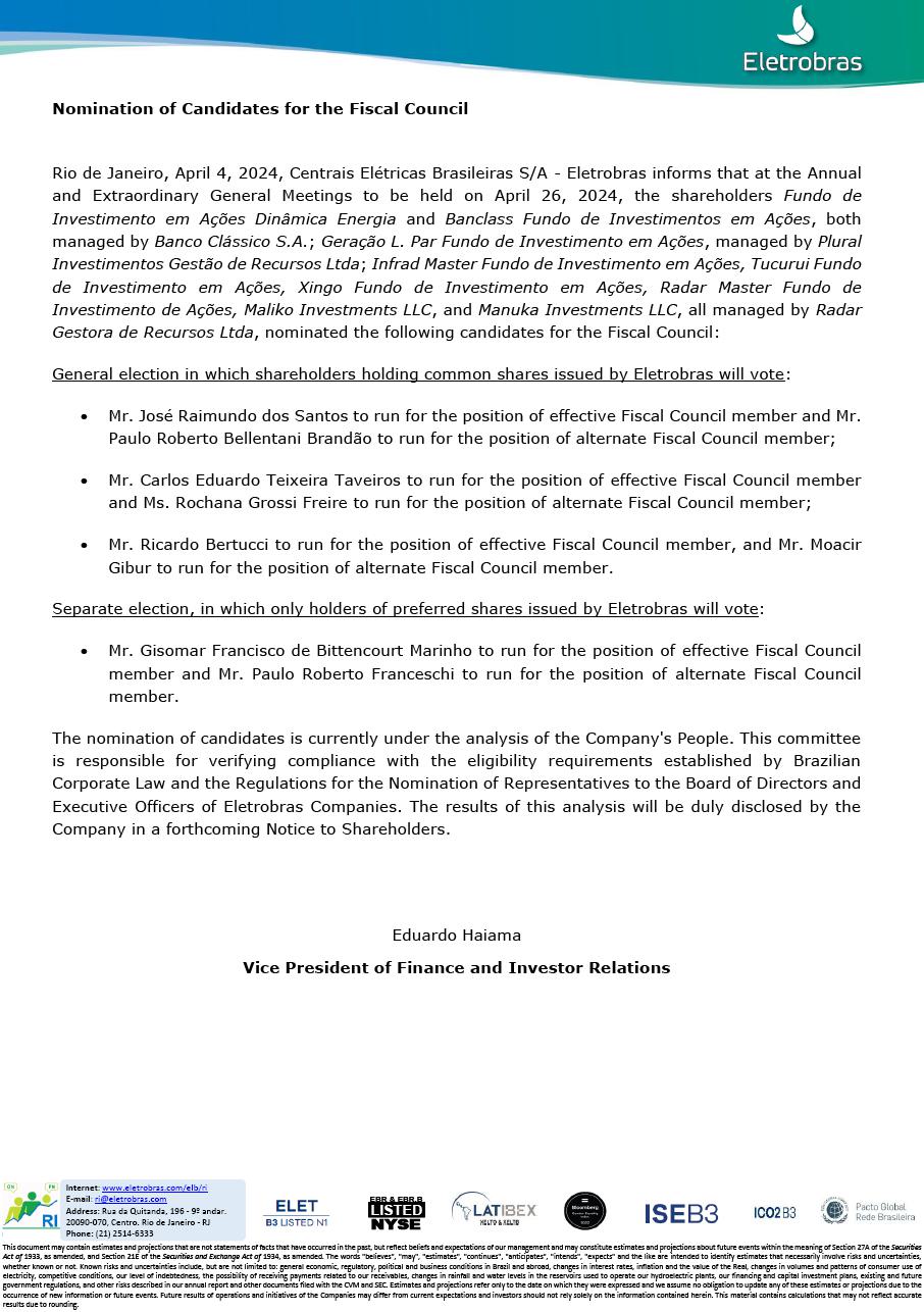 CENTRAIS ELÉTRICAS BRASILEIRAS S.A. - ELETROBRÁS