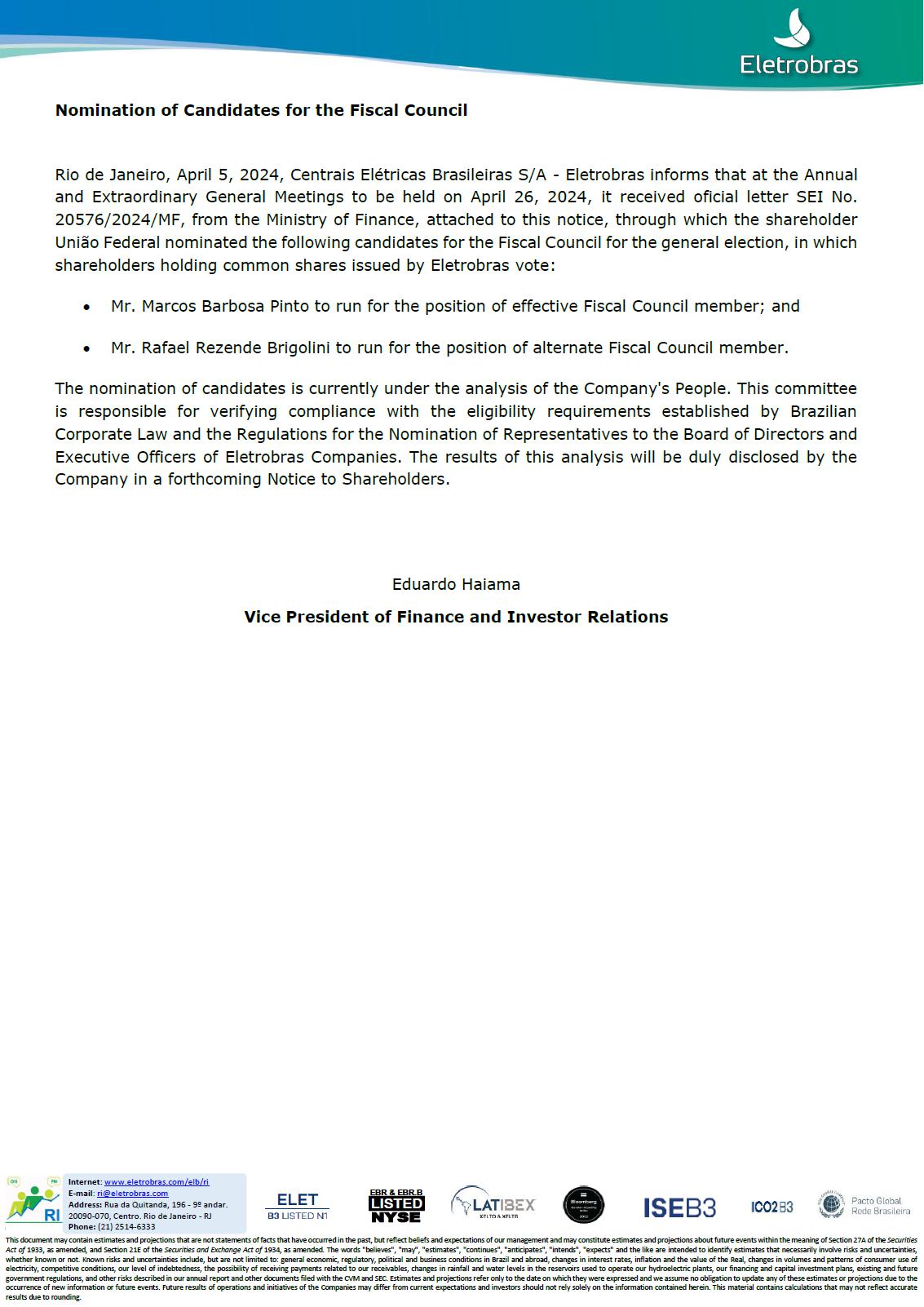 CENTRAIS ELÉTRICAS BRASILEIRAS S.A. - ELETROBRÁS