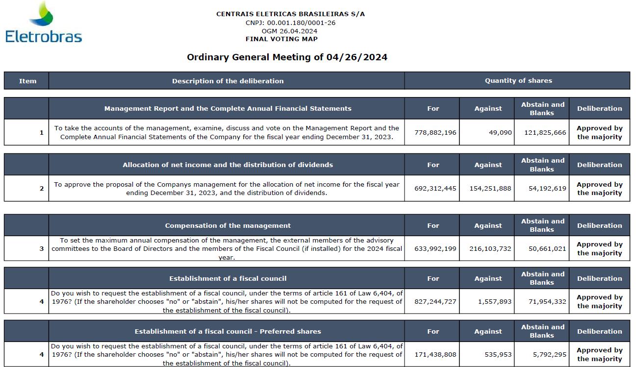 CENTRAIS ELÉTRICAS BRASILEIRAS S.A. - ELETROBRÁS