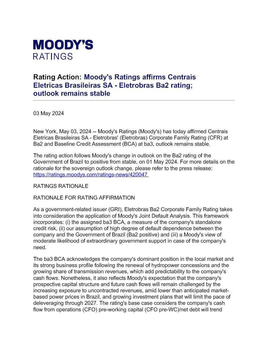 CENTRAIS ELÉTRICAS BRASILEIRAS S.A. - ELETROBRÁS