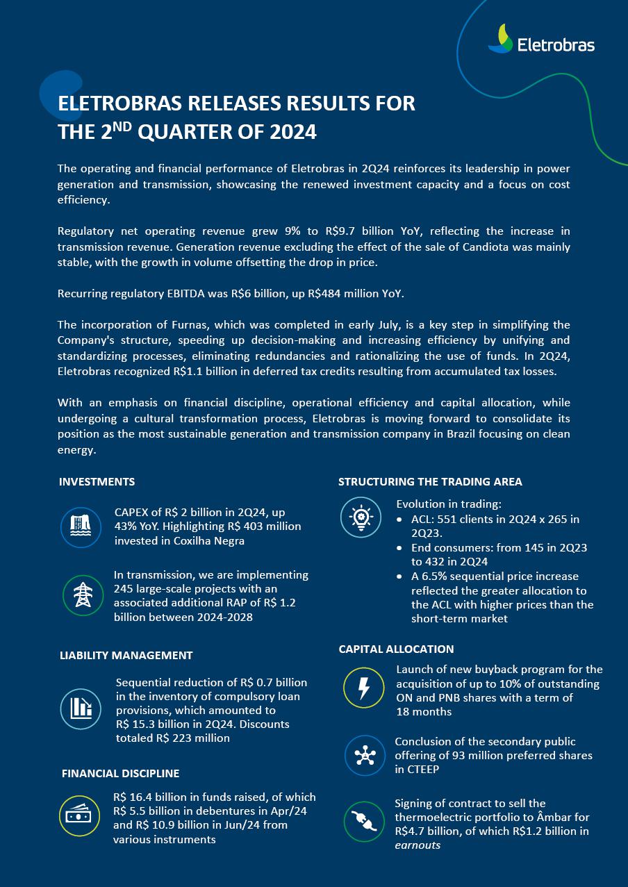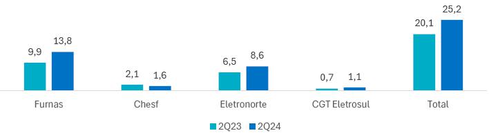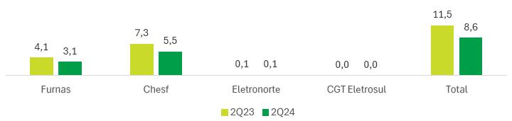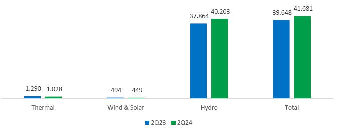 In 2Q24, we owned 99 plants, of which 47 were hydroelectric, 7 thermal, 43 wind and 1 solar, taking into account corporate ventures, shared ownership and holdings via SPEs.