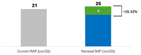 The 2023 RTP resulted in a nominal economic repositioning index (IRT) of +20.32%, with an increase in RAP of R$4 million. Two positive Adjustment Portions (PA) were also defined: (i) Retroactivity PA, in the amount of R$5.9 million, to be paid over the next 4 tariff cycles; and (ii) Postponement PA, in the amount of R$1.5 million (at Jun/23 prices), to be paid in the 2024/2025 cycle.