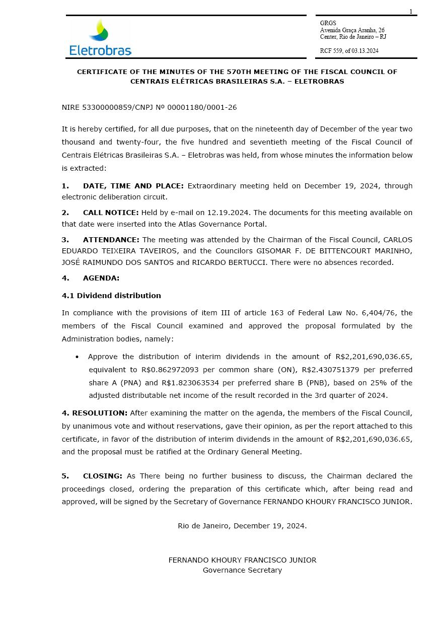 BRAZILIAN ELECTRIC POWER COMPANY