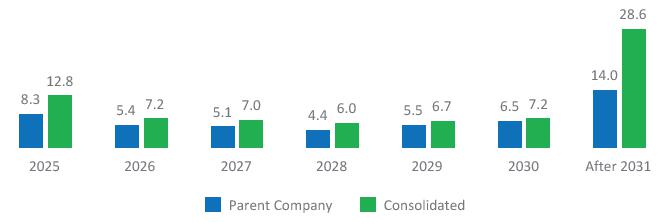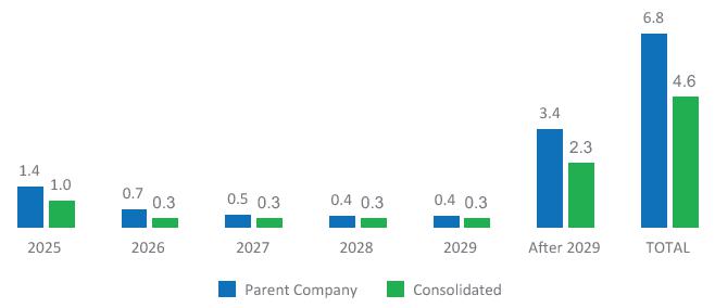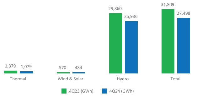 Investments: R$ 2,775 million in 4Q24 (-40.1% YoY), mainly due to the R$ 1,728 million contributions in 4Q23, which had no counterpart in 4Q24, and lower investments in implementation and expansion following the completion of the Coxilha Negra project. In 2024, investments totaled R$ 7,709 million (-14.5% YoY), reflecting a reduced need for contributions to SPEs due to improved management.