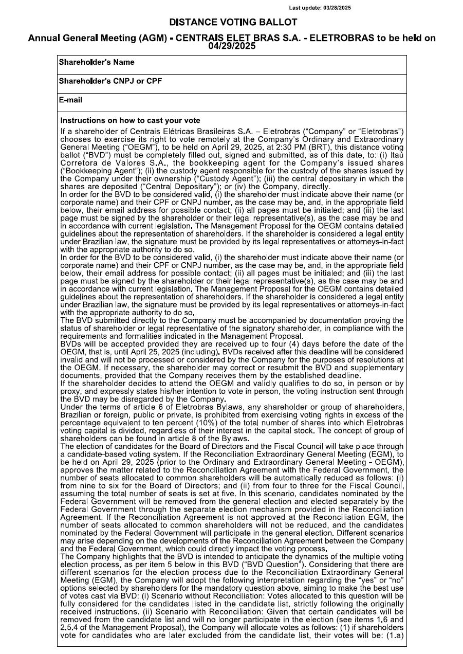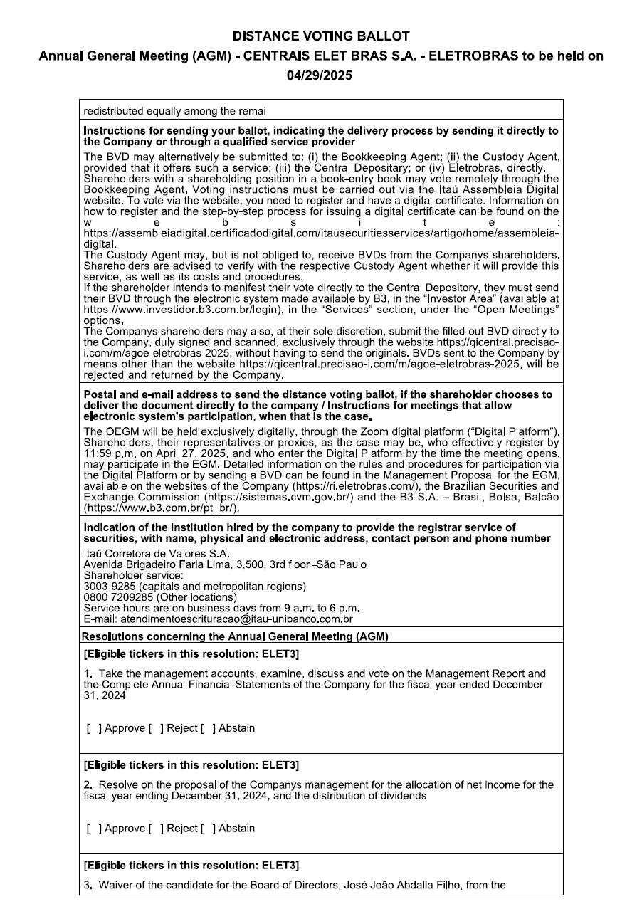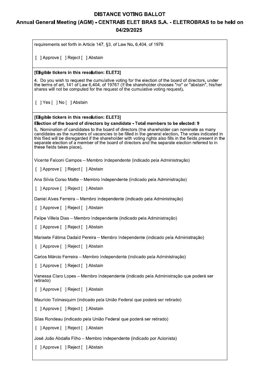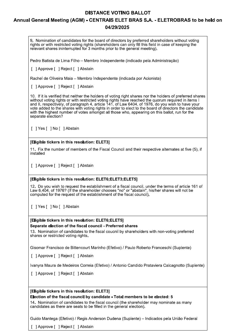 CENTRAIS ELÉTRICAS BRASILEIRAS S.A. - ELETROBRÁS