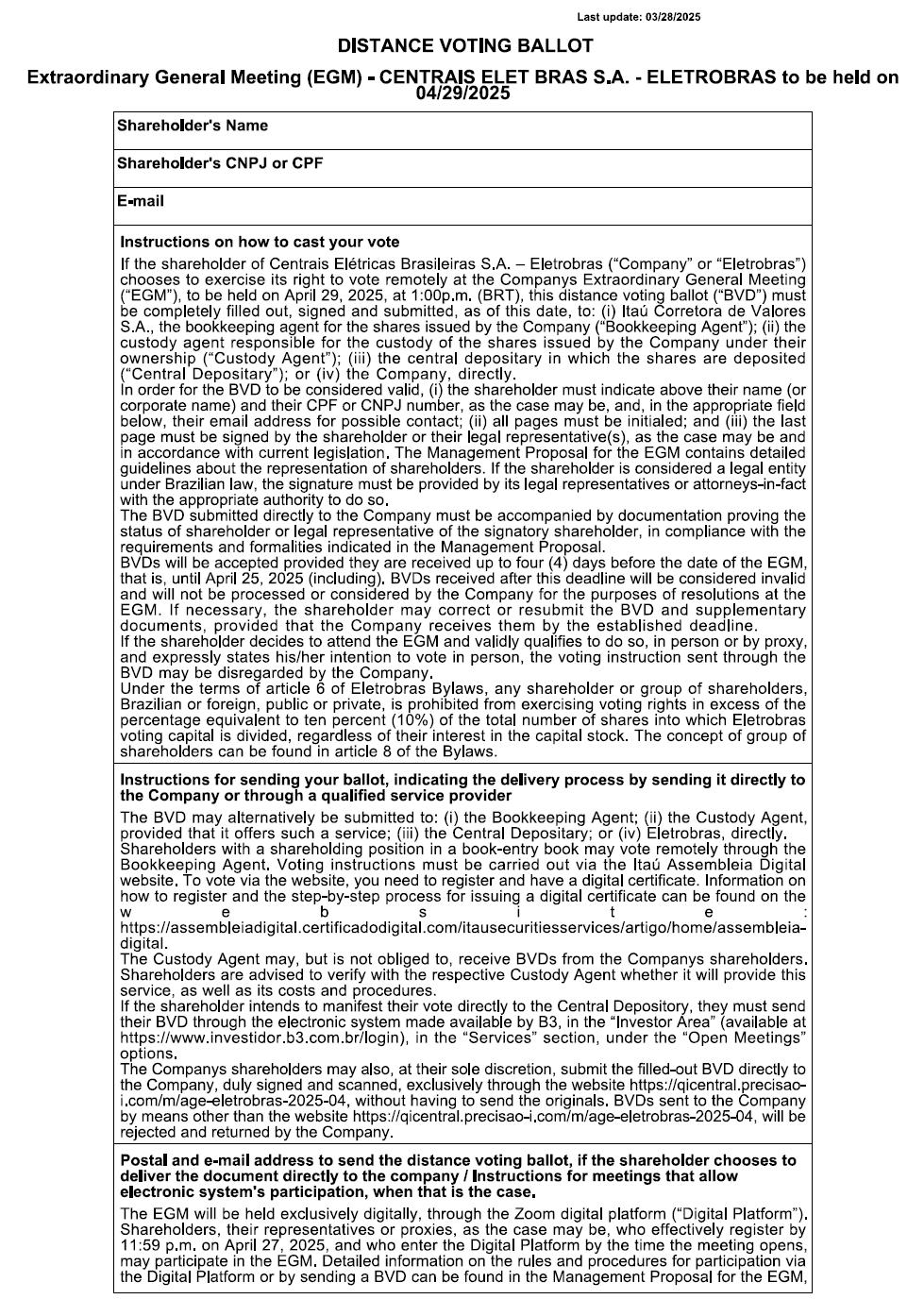 6-K 1 ebr20250329_6k.htm 6-K