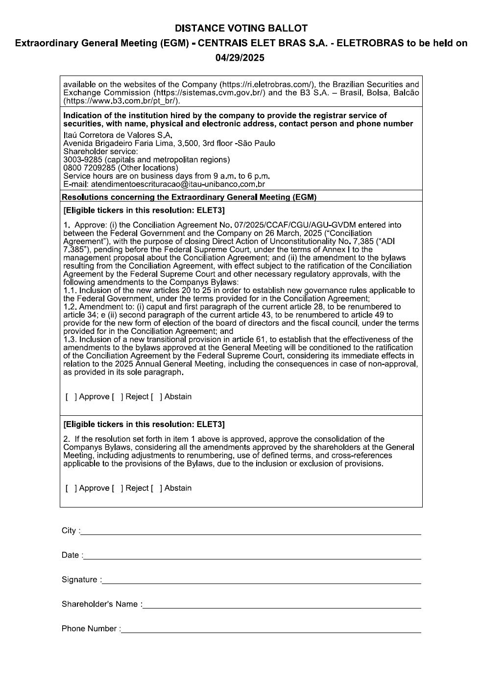 BRAZILIAN ELECTRIC POWER COMPANY