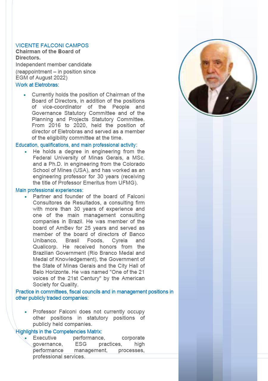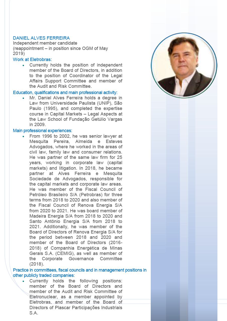 Paragraph 5 - The candidates nominated by the Federal Government pursuant to this Article 20 and respective paragraphs shall comply with the provisions of these Bylaws and the applicable Eletrobras’ internal policies, including their eligibility.
