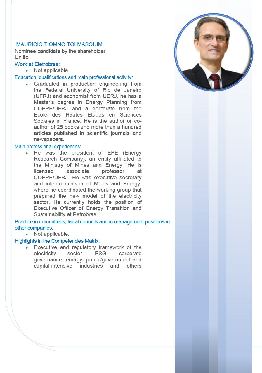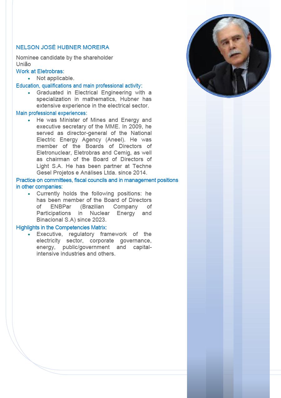 Article 23 - It shall be exclusively incumbent upon the Federal Government, on behalf of the Federal Government Shareholders’ Group, to submit to the Company the name and all other information of the persons it intends to elect to the Company's Board of Directors and/or Fiscal Council, by means of a separate vote provided for in Article 20 and respective paragraphs of these Bylaws, provided that such submission must occur at least sixty (60) days prior to the date of the general meeting whose agenda is the election of members of the Company's Board of Directors and/or Fiscal Council, according to the annual calendar disclosed by Eletrobras, in order to enable the analysis provided for in the sixth paragraph of Article 28 of these Bylaws and Eletrobras' internal policies.