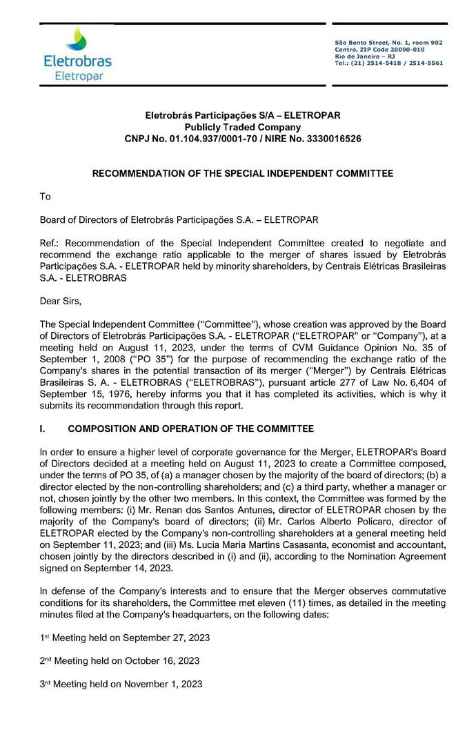 2.4.1. Merger of Eletropar into Eletrobras 23