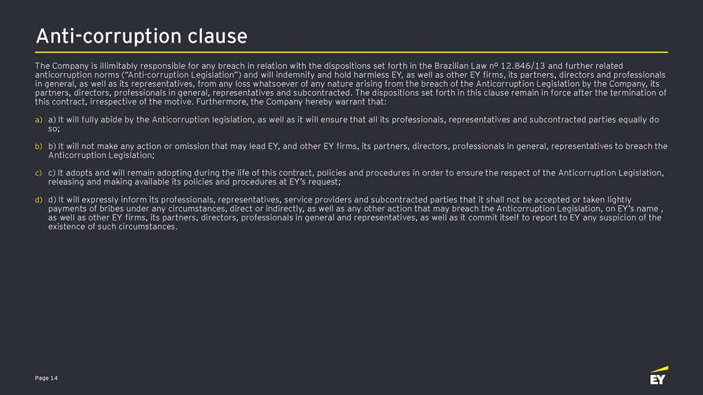 Article 22 - While the Federal Government, on behalf of the Federal Government Shareholders’ Group, holds the right to elect, by means of a separate vote, any number of members for the Company's Board of Directors and Fiscal Council, the Federal Government and the members of the Federal Government Shareholders’ Group shall abstain from performing the following acts: according to the obligation assumed in the Conciliation Agreement: