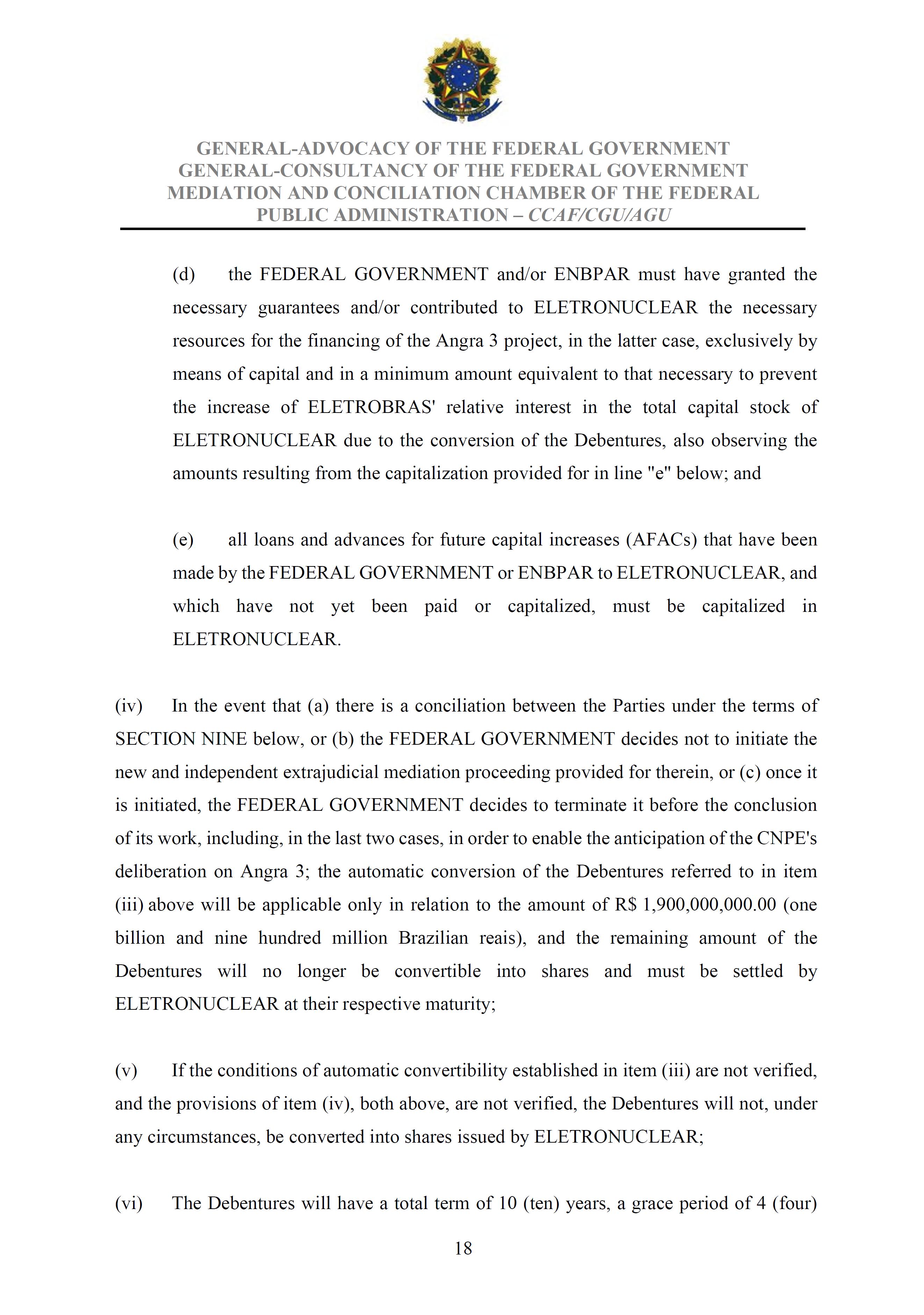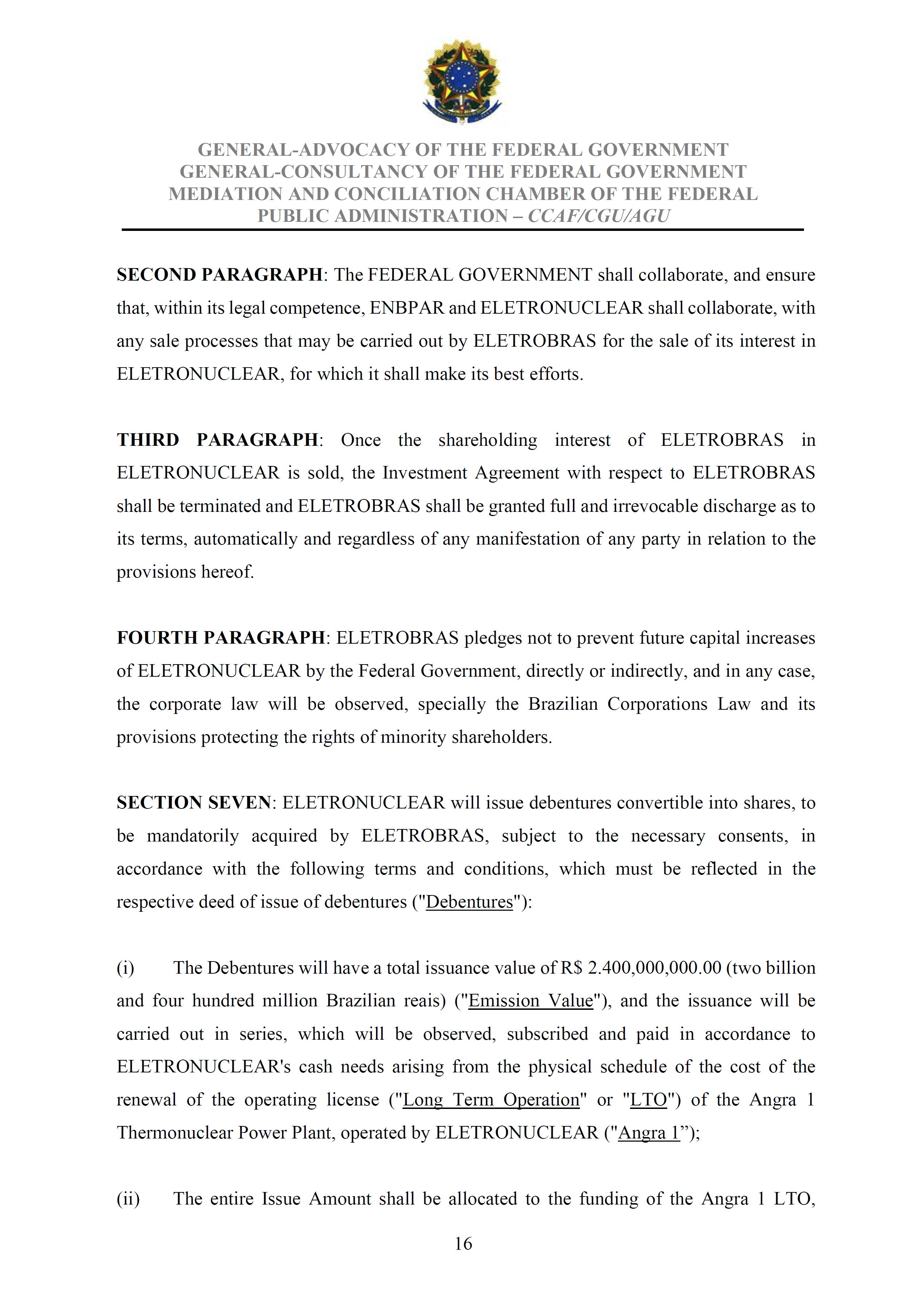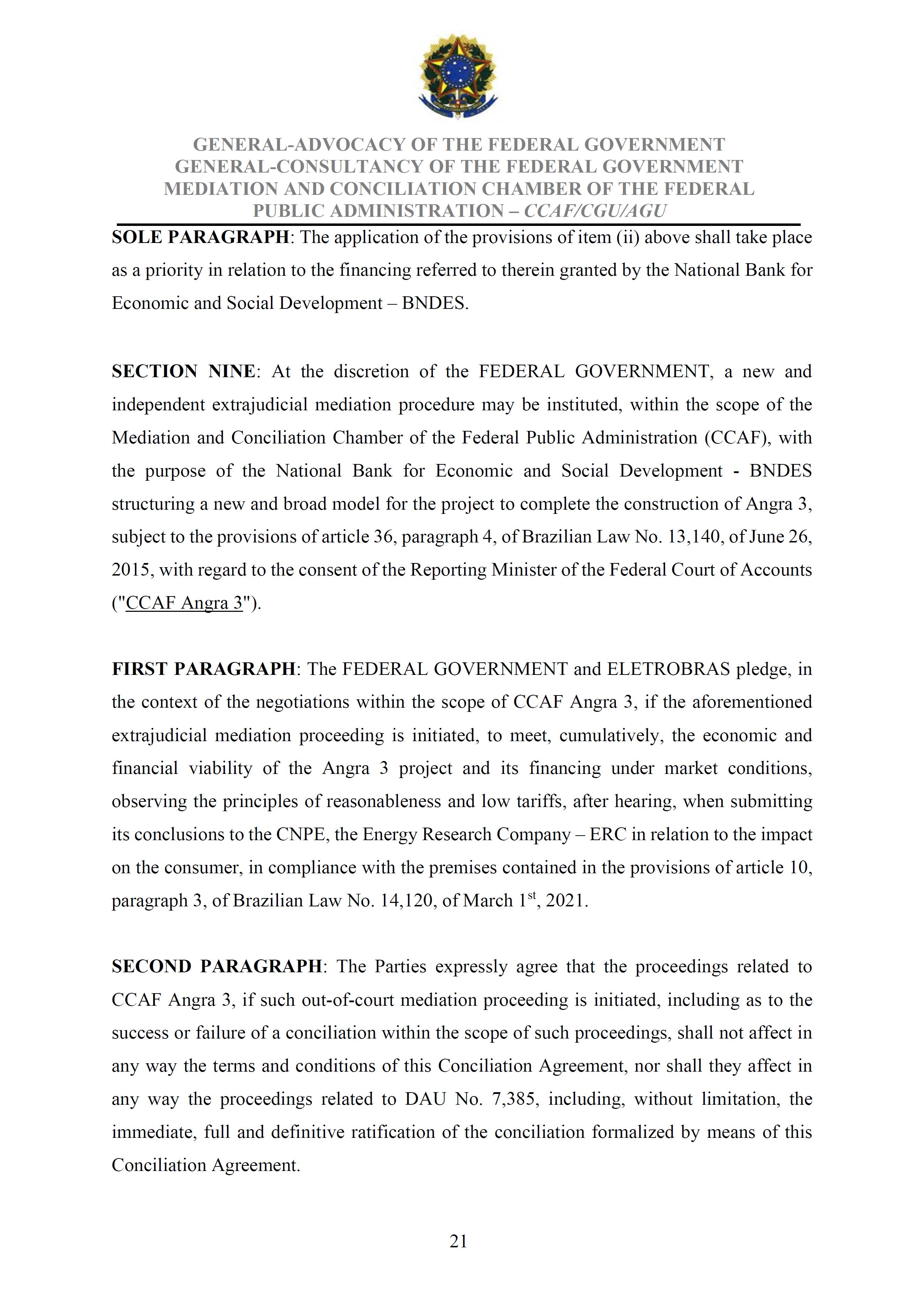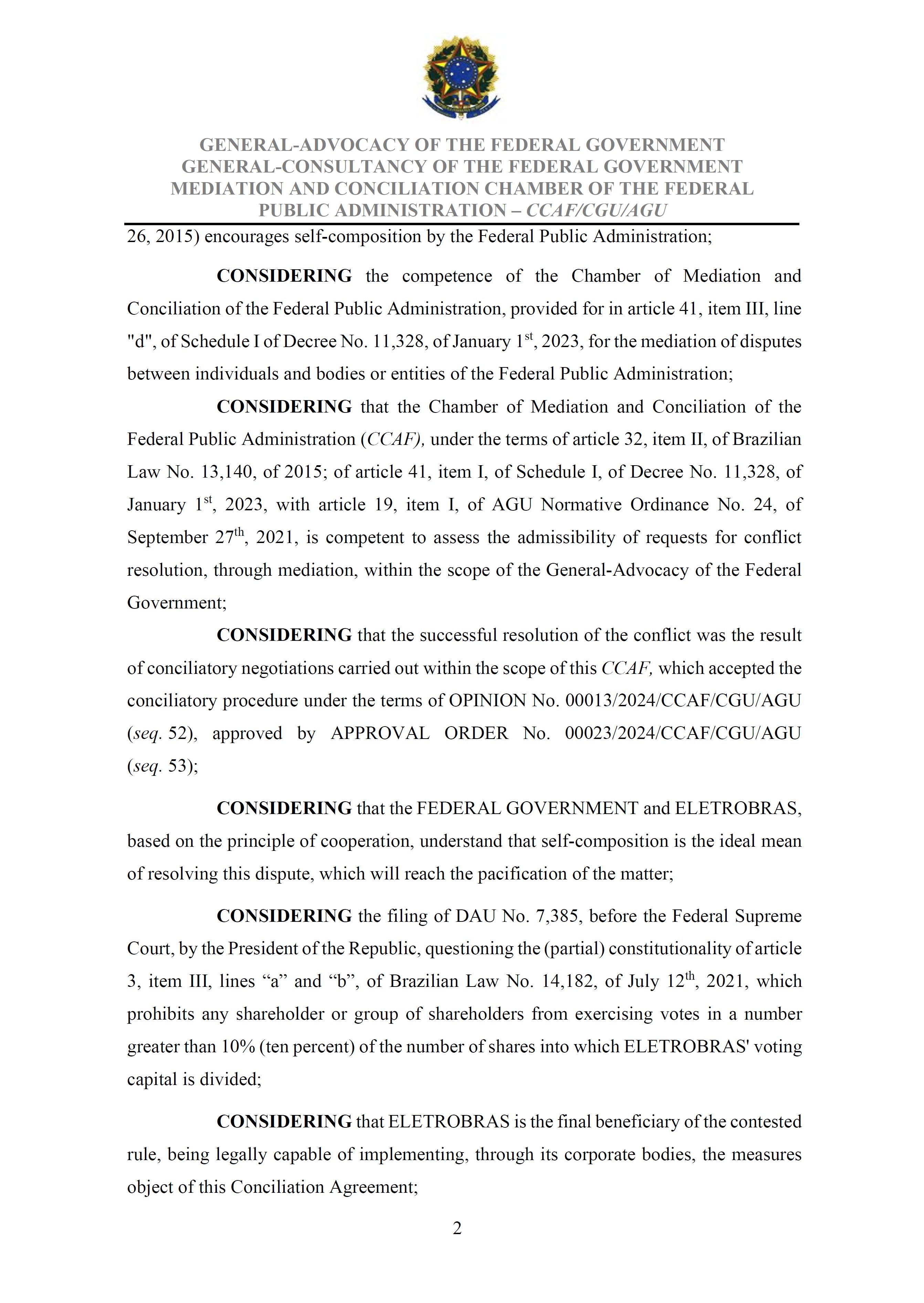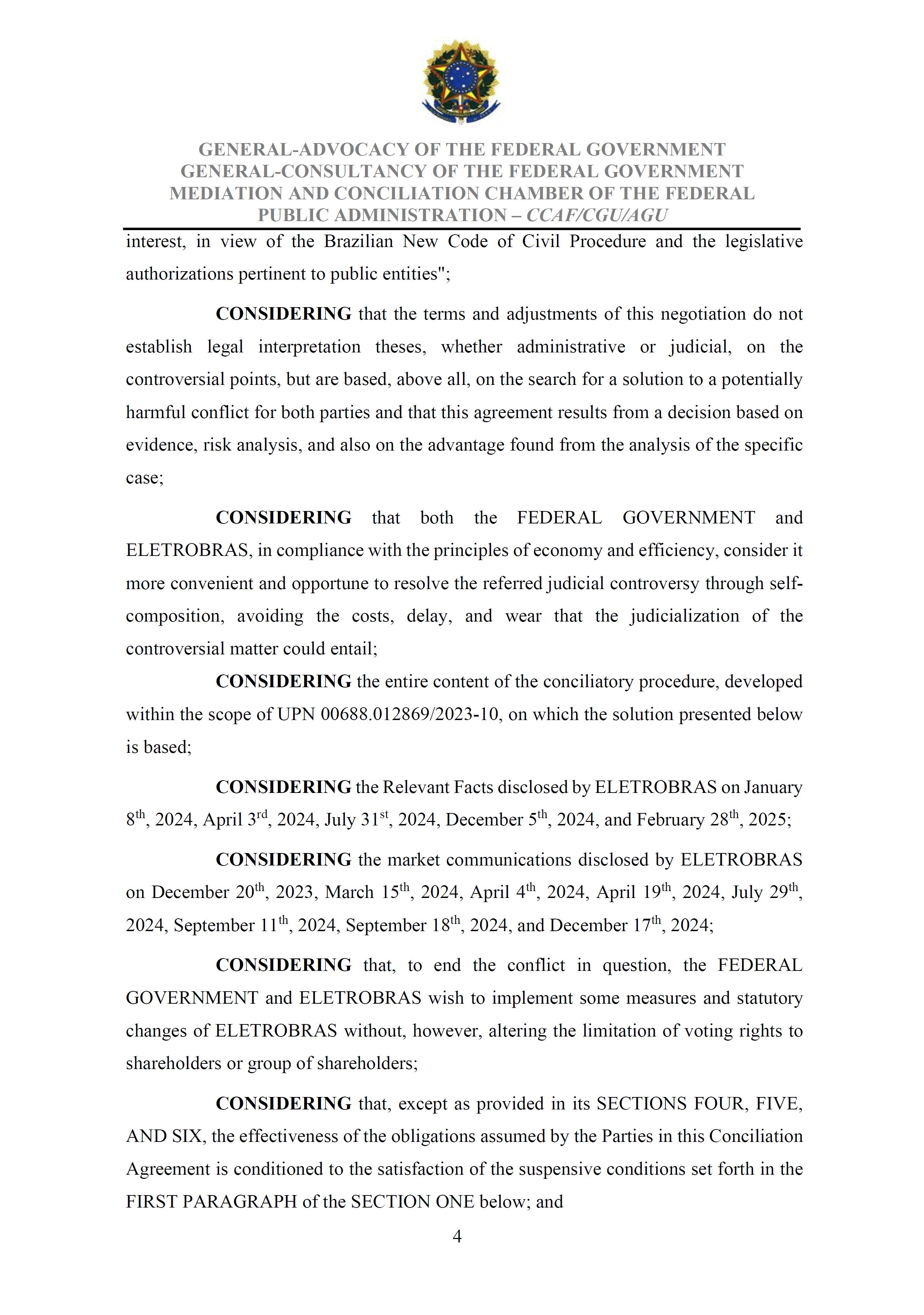 Sole Paragraph - If the conditions of effectiveness dealt with in the Conciliation Agreement related to its ratification by the Federal Supreme Court do not materialize, under the terms and conditions agreed therein, the position held by one of the three candidates elected separately by the Federal Government will immediately become vacant, as previously defined in the management proposal of the Ordinary General Meeting held during the fiscal year of 2025, and it will be up to the Board of Directors to call a general meeting only for the election of his replacement.