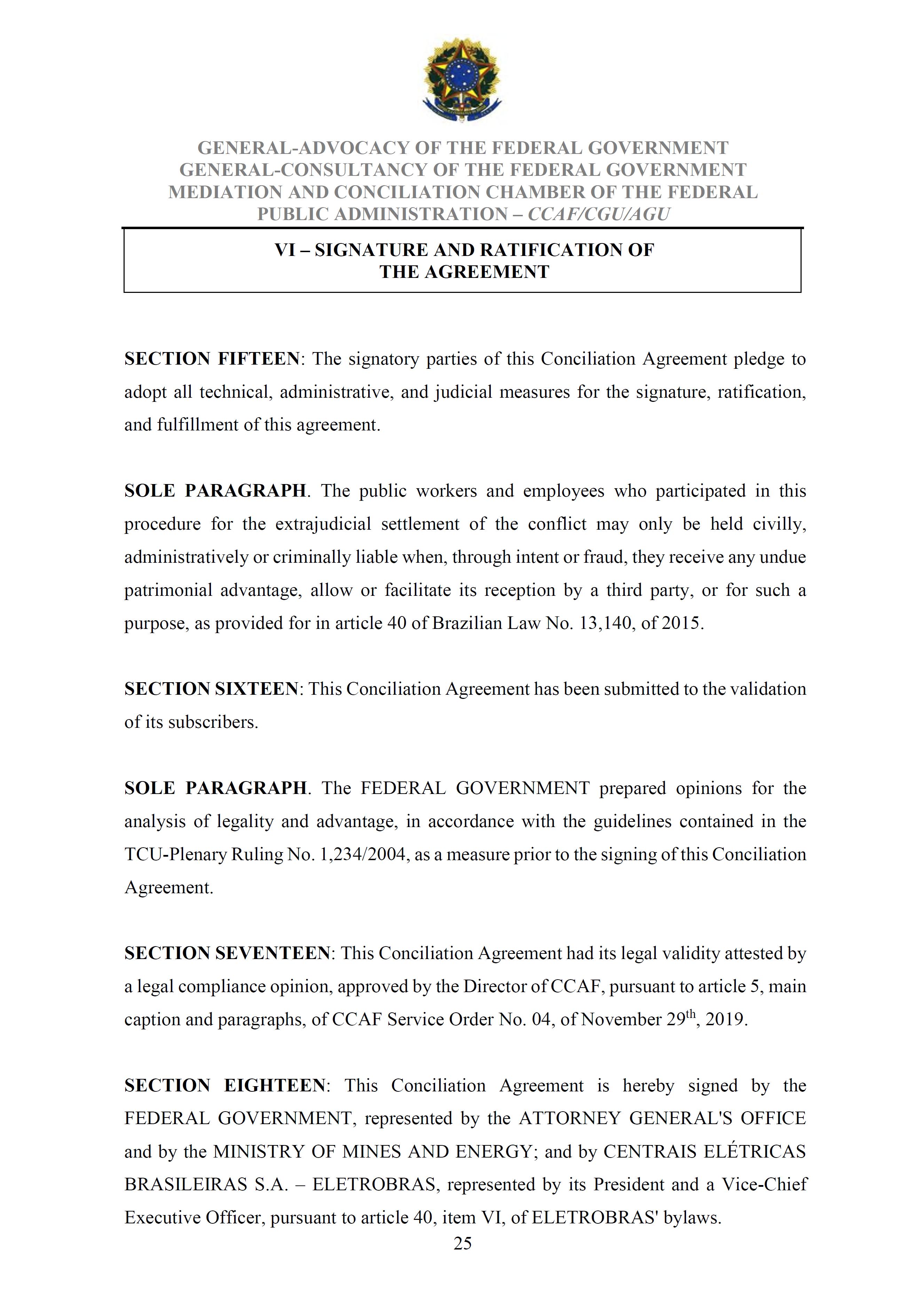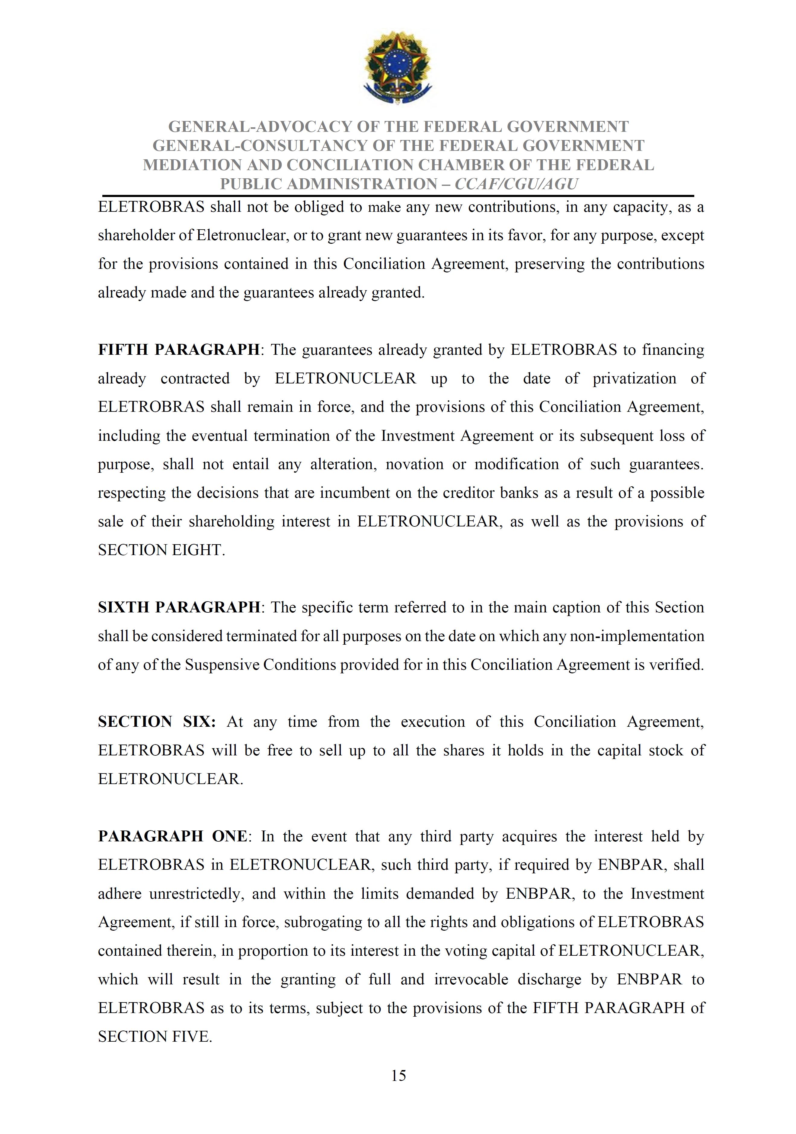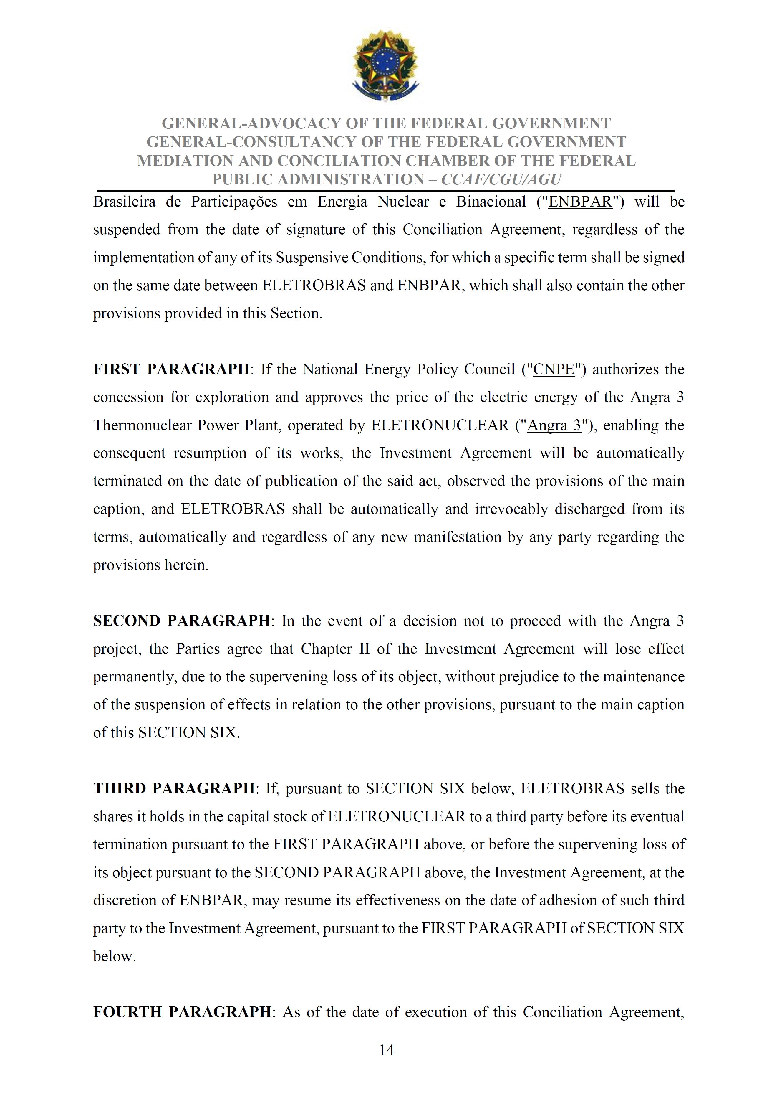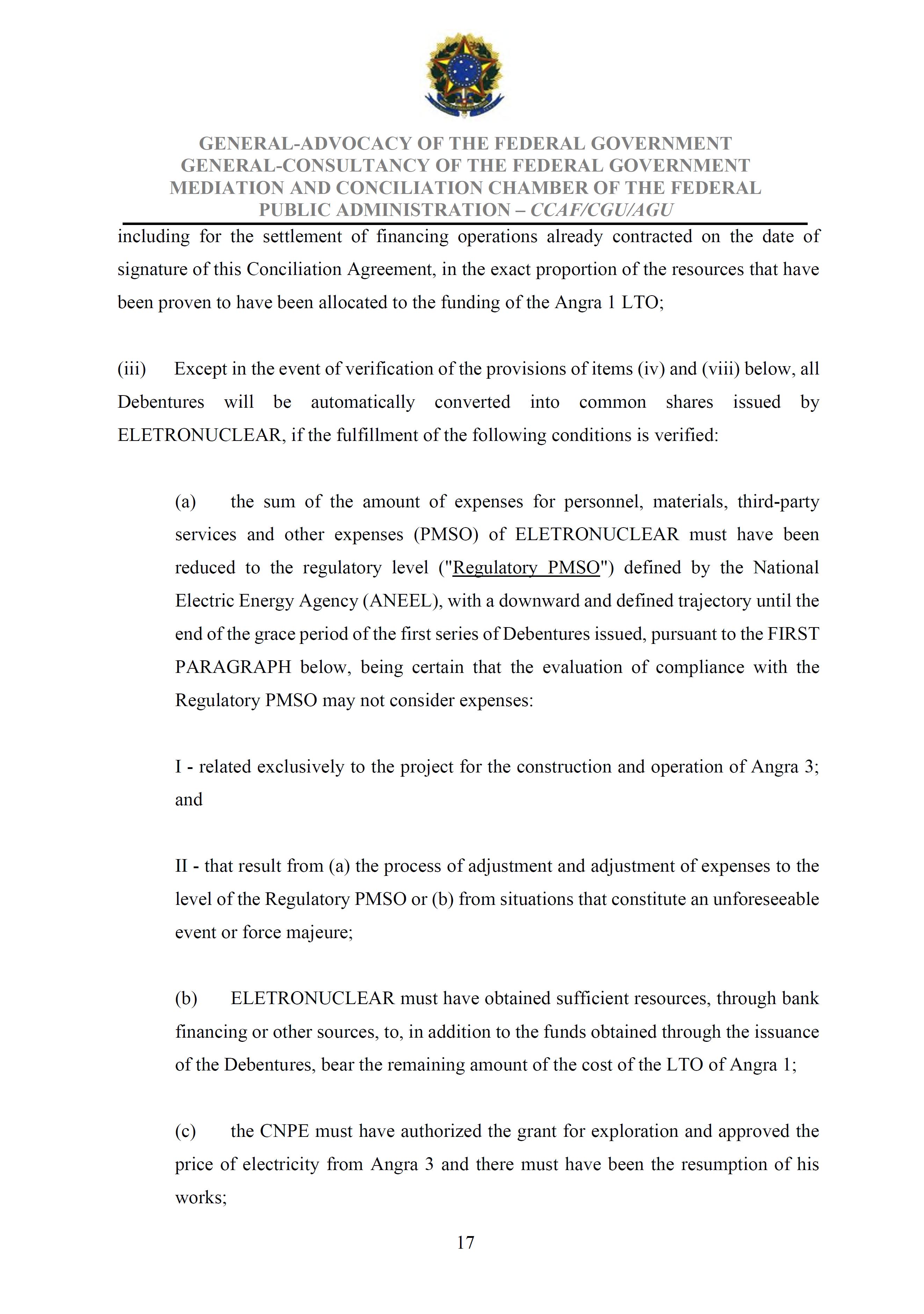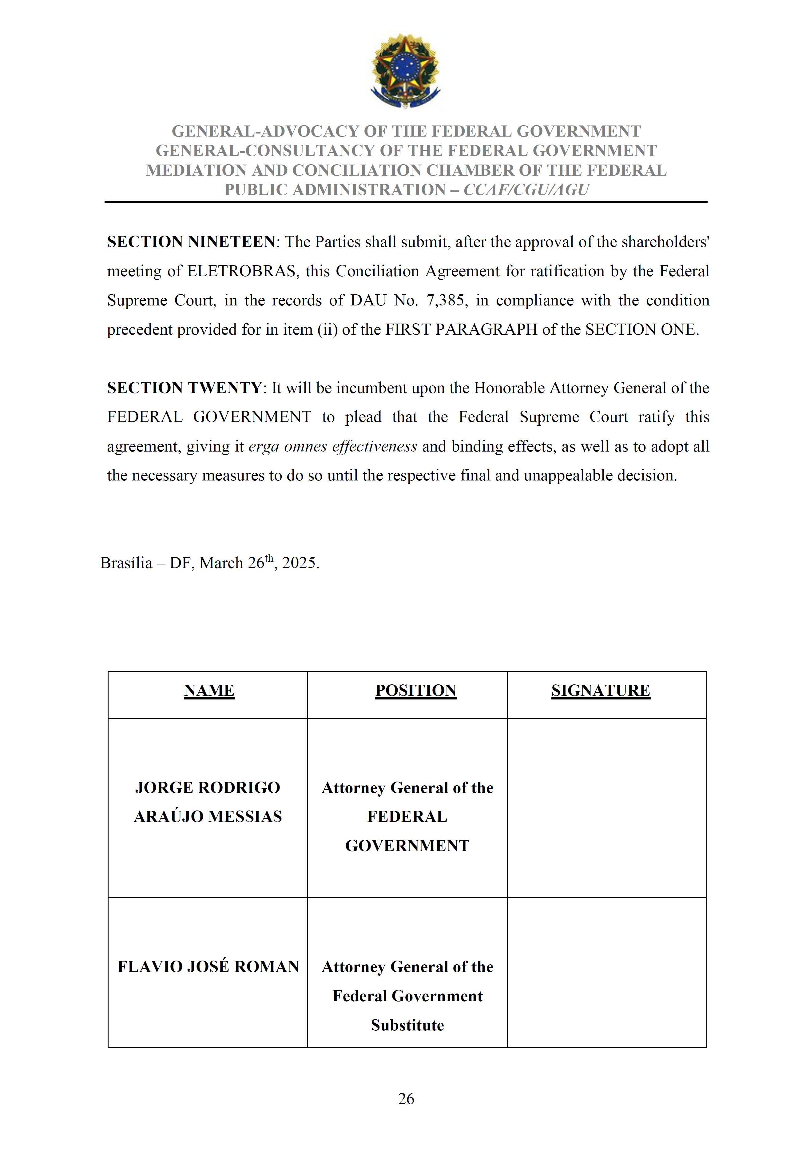 Sole Paragraph - If the conditions of effectiveness dealt with in the Conciliation Agreement related to its ratification by the Federal Supreme Court do not materialize, under the terms and conditions agreed therein, the position held by one of the three candidates elected separately by the Federal Government will immediately become vacant, as previously defined in the management proposal of the Ordinary General Meeting held during the fiscal year of 2025, and it will be up to the Board of Directors to call a general meeting only for the election of his replacement.