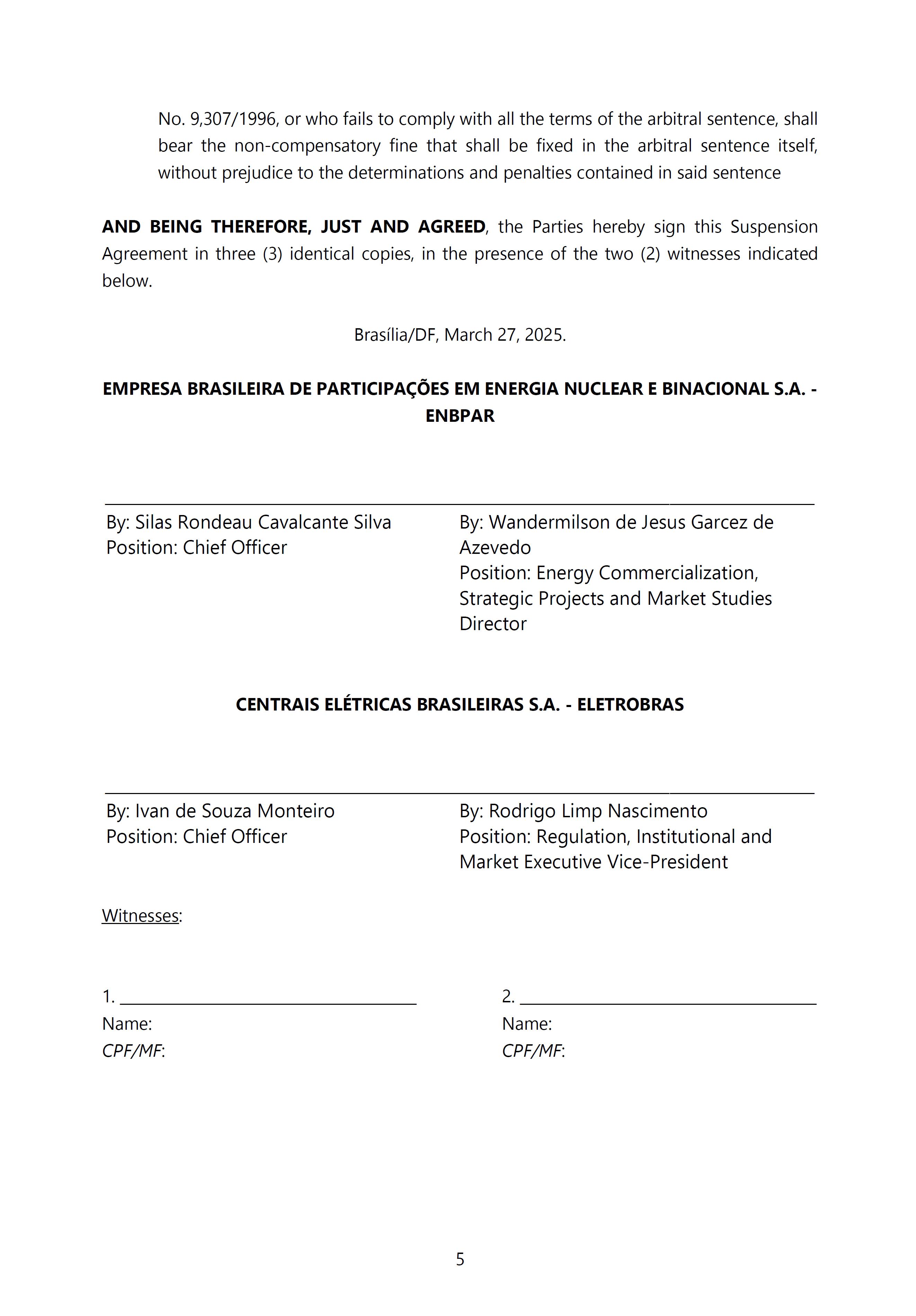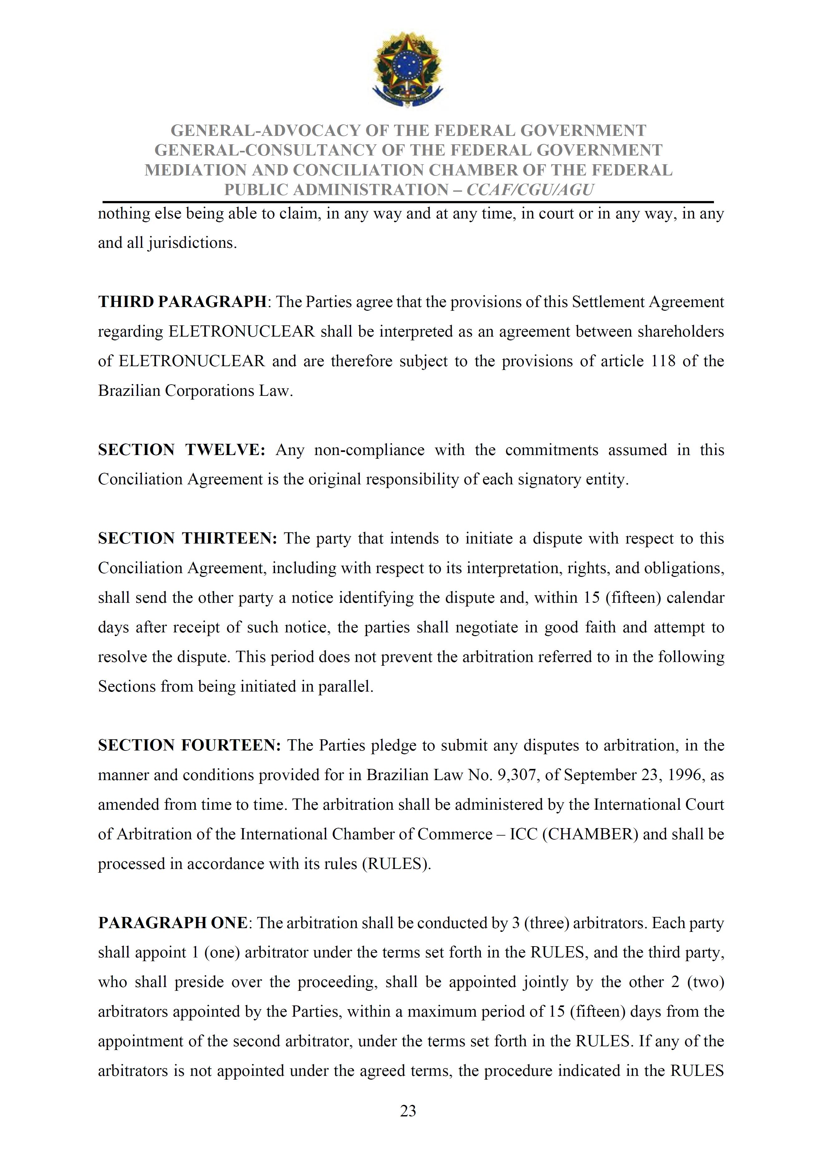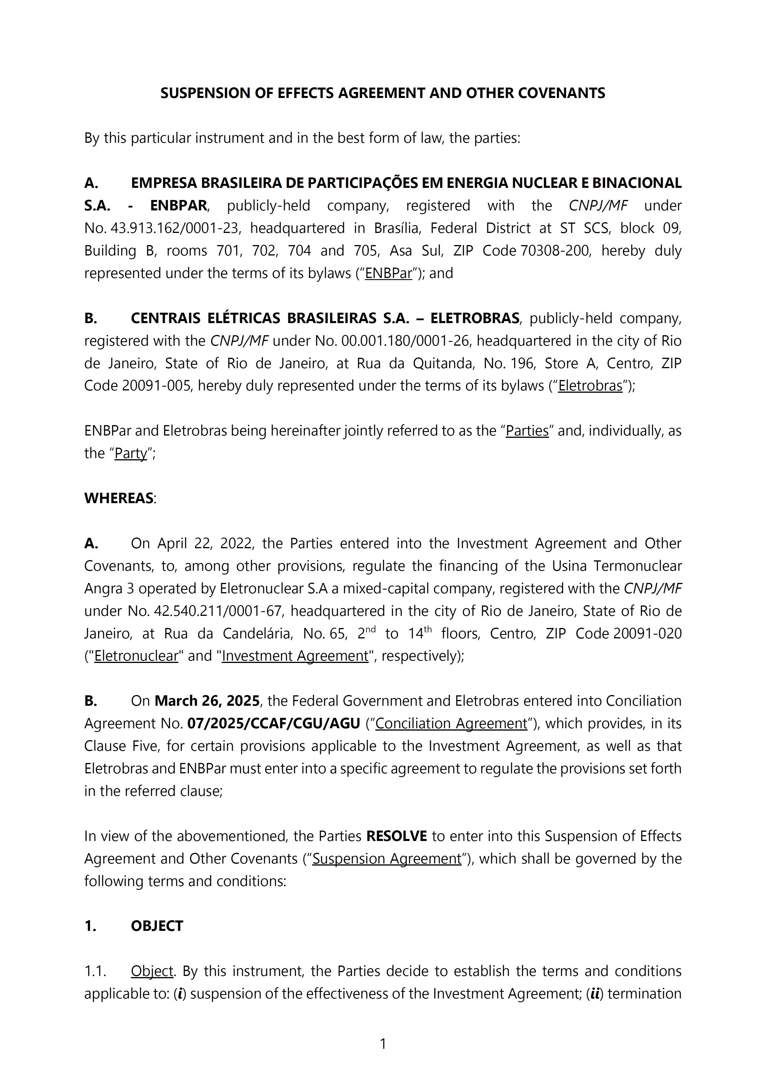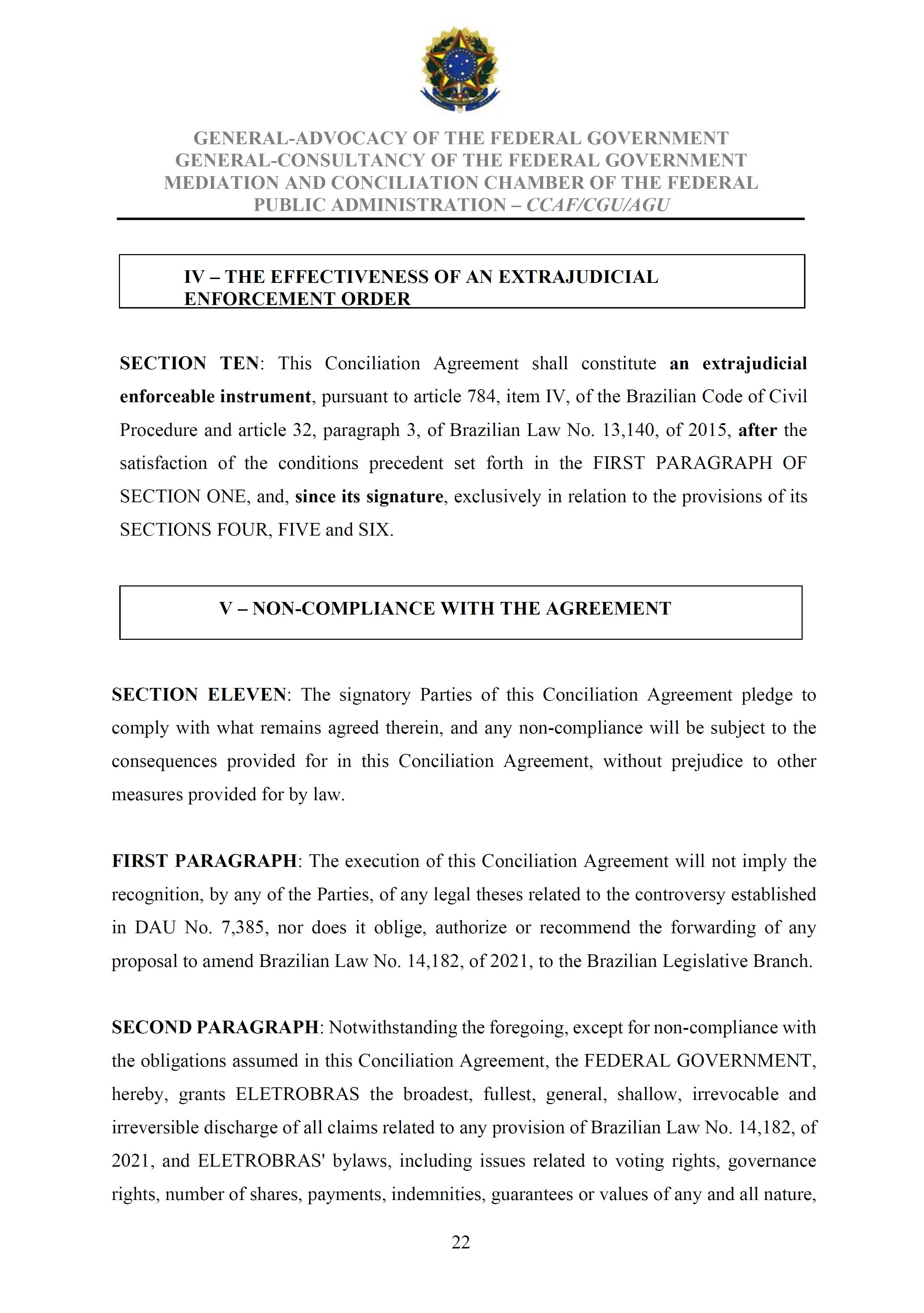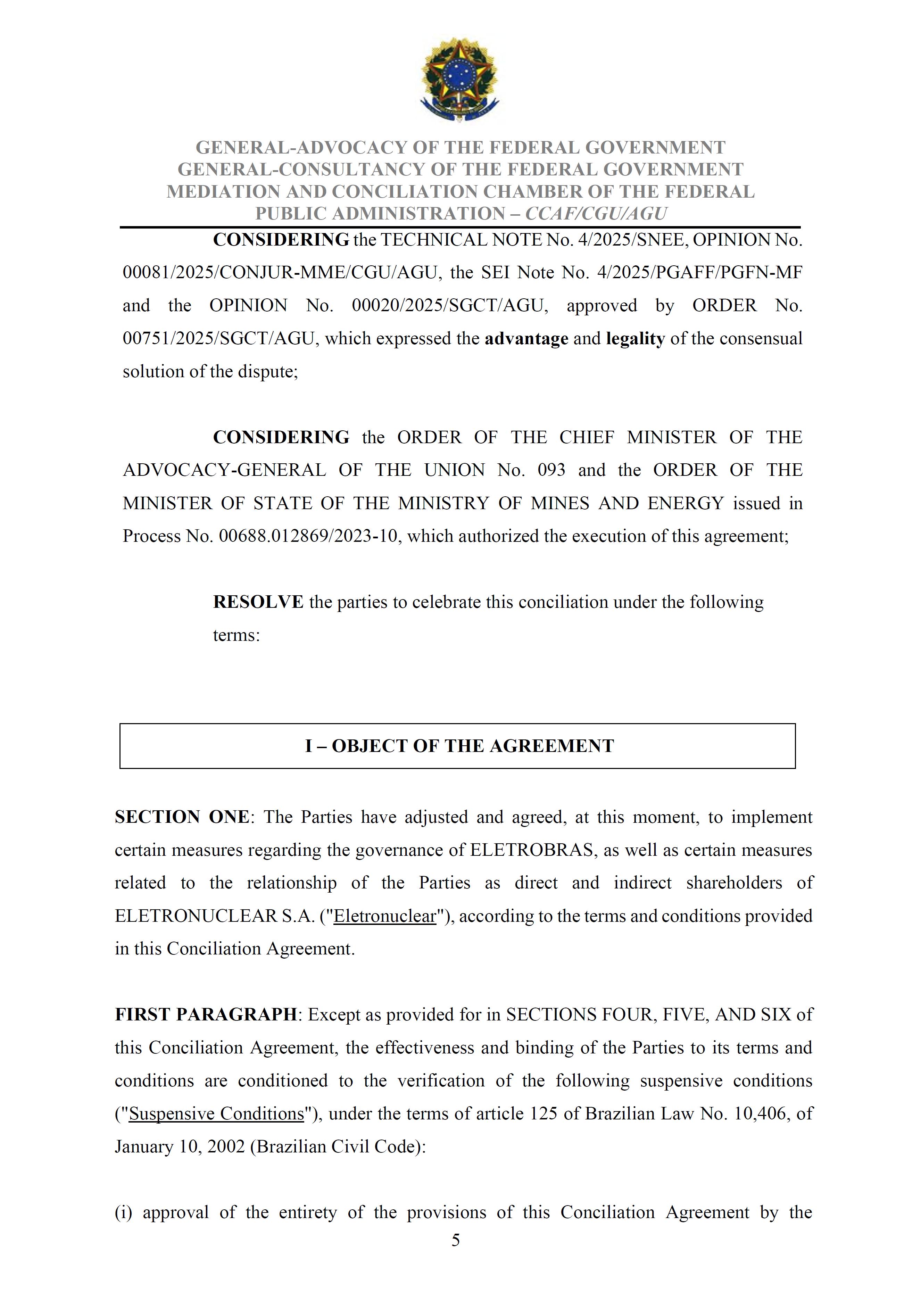 Sole Paragraph - If the conditions of effectiveness dealt with in the Conciliation Agreement related to its ratification by the Federal Supreme Court do not materialize, under the terms and conditions agreed therein, the position held by one of the three candidates elected separately by the Federal Government will immediately become vacant, as previously defined in the management proposal of the Ordinary General Meeting held during the fiscal year of 2025, and it will be up to the Board of Directors to call a general meeting only for the election of his replacement.