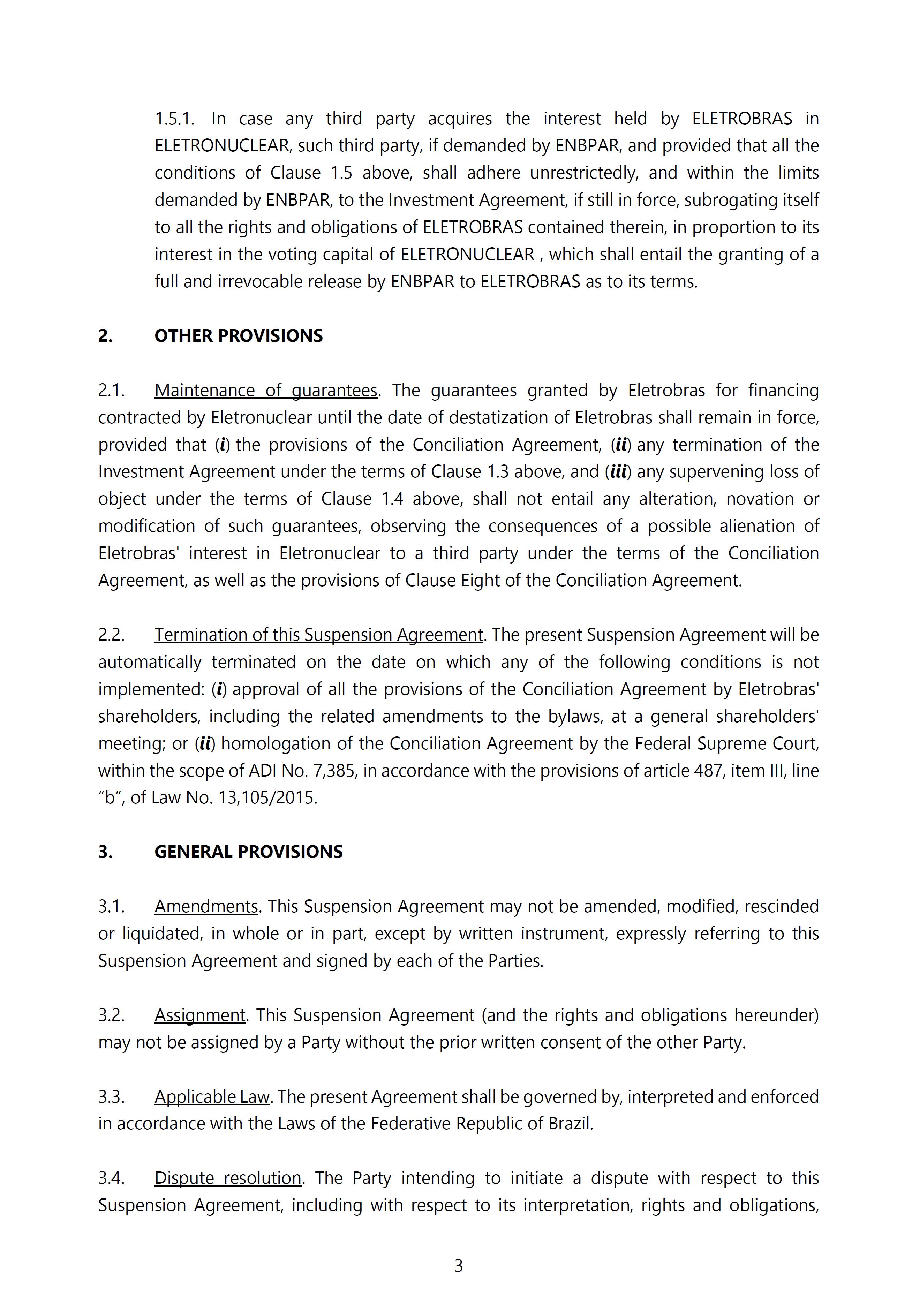 Article 61 - The amendments to the Company's Bylaws approved at the Conciliation Meeting, namely the inclusion of the new articles 20 to 25, as well as the amendments to article 34 (renumbered), caput, and paragraph one, and paragraph two of article 49 (renumbered) main section, have as a suspensive condition of effectiveness, under the terms of Article 125 of Law No. 10,406, of January 10, 2002, the approval of the Conciliation Agreement by the Federal Supreme Court, except as provided in Clause Four of the Conciliation Meeting.