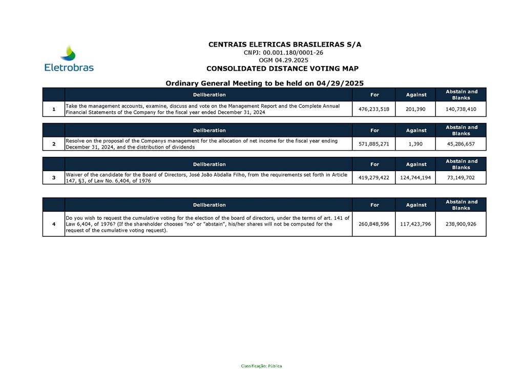 This document may contain estimates and projections that are not statements of past events but reflect our management’s beliefs and expectations and may constitute forward-looking statements under Section 27A of the Securities Act of 1933, as amended, and Section 21E of the Securities and Exchange Act of 1934, as amended. The words “believes”, “may”, “can”, “estimates”, “continues”, “anticipates”, “intends”, “expects”, and similar expressions are intended to identify estimates that necessarily involve known and unknown risks and uncertainties. Known risks and uncertainties include, but are not limited to: general economic, regulatory, political, and business conditions in Brazil and abroad; fluctuations in interest rates, inflation, and the value of the Brazilian Real; changes in consumer electricity usage patterns and volumes; competitive conditions; our level of indebtedness; the possibility of receiving payments related to our receivables; changes in rainfall and water levels in reservoirs used to operate our hydroelectric plants; our financing and capital investment plans; existing and future government regulations; and other risks described in our annual report and other documents filed with the CVM and SEC. Estimates and projections refer only to the date they were expressed, and we do not assume any obligation to update any of these estimates or projections due to new information or future events. Future results of the Company’s operations and initiatives may differ from current expectations, and investors should not rely solely on the information contained herein. This material contains calculations that may not reflect precise results due to rounding.