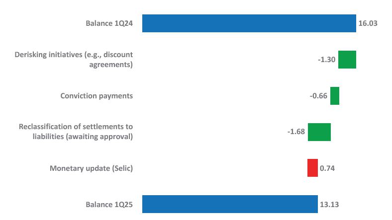 Adjusted Regulatory Provisions: net provision of R$ 77 million, mainly impacted by the lower default on energy sold to Amazonas Energia, which fell to R$ 56 million in 1Q25 from R$ 432 million in 1Q24.