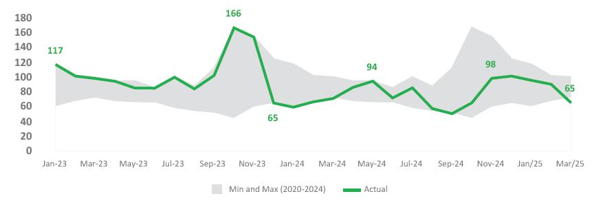 Adjusted PMSO: R$ 1,467 million (down -8.0% YoY), reflecting savings linked to efficiency gains. In 1Q25, adjusted PMSO was impacted by the following effects: