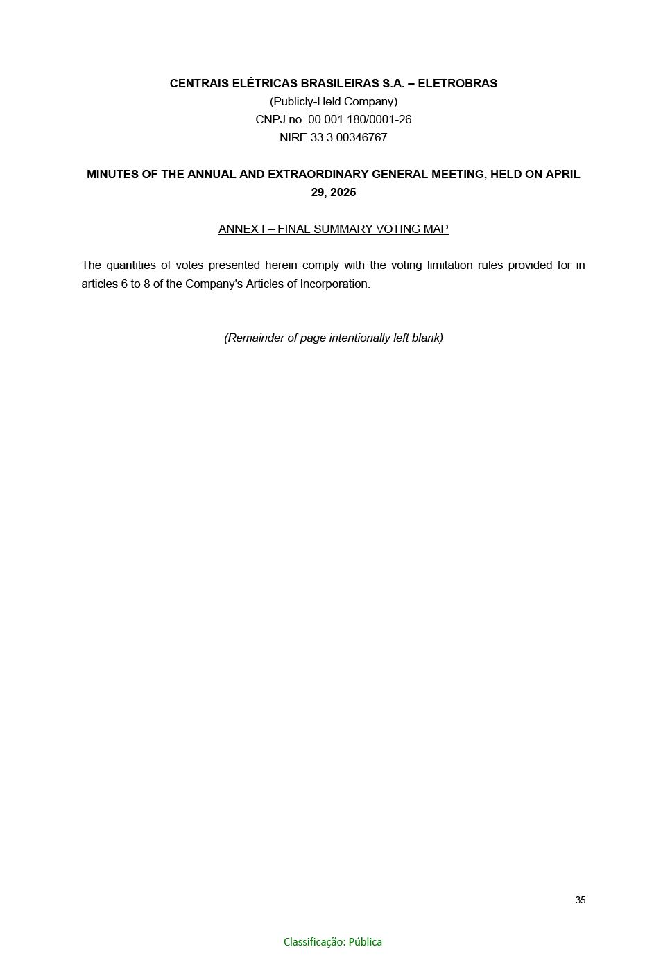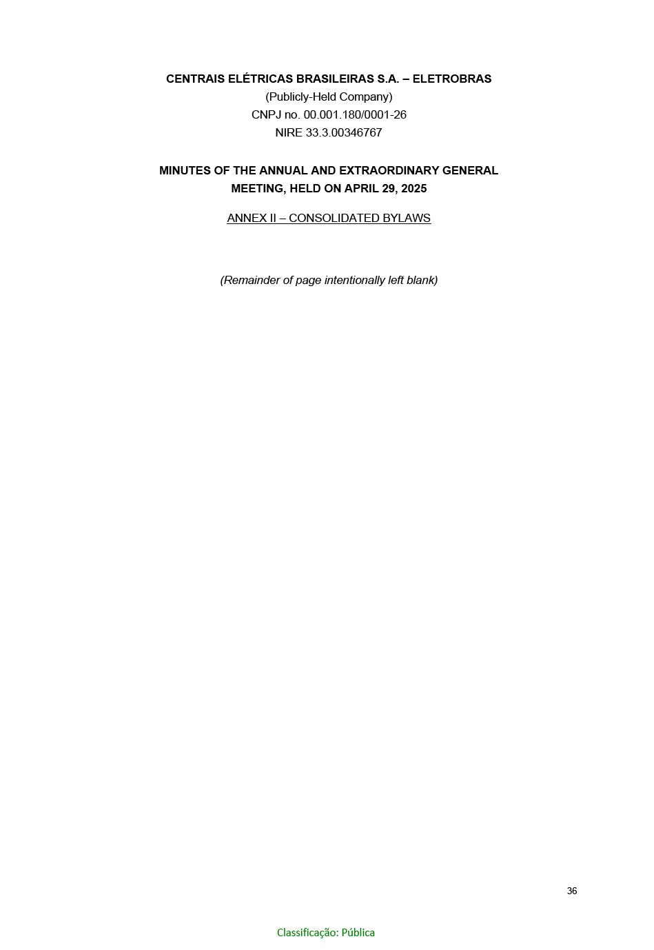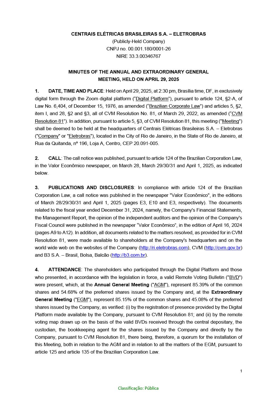 BRAZILIAN ELECTRIC POWER COMPANY
